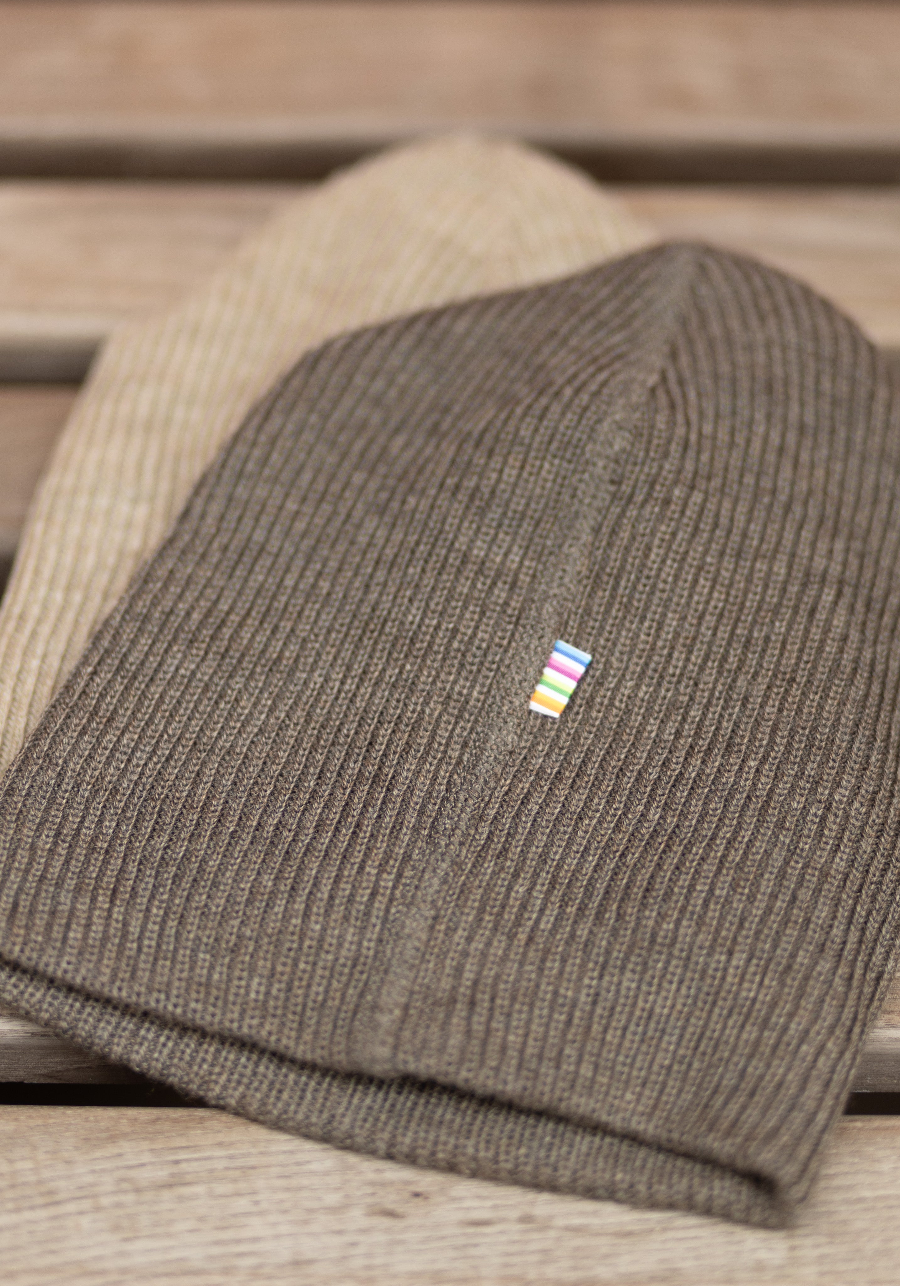 Căciulă dublată din lână merinos - Rib Dark Brown