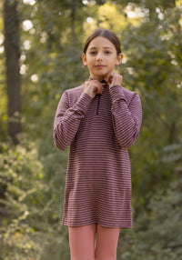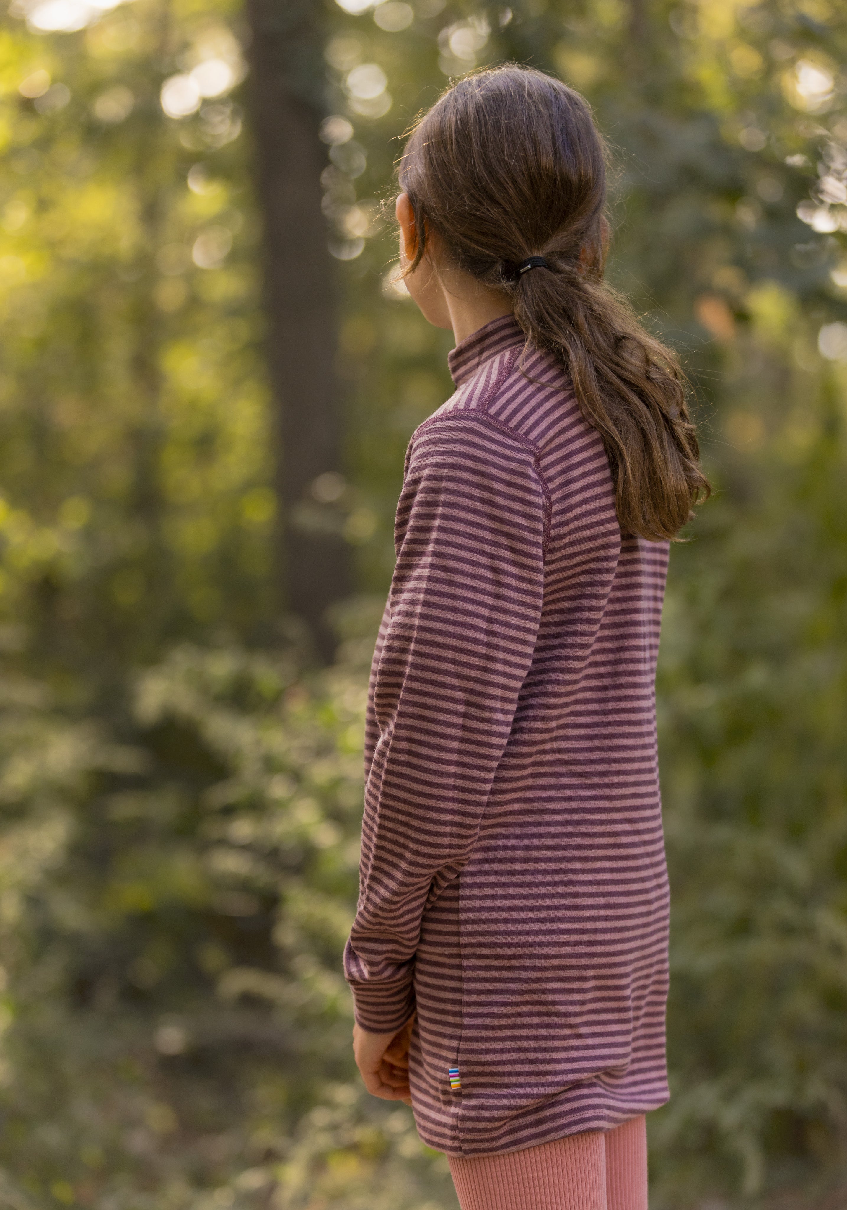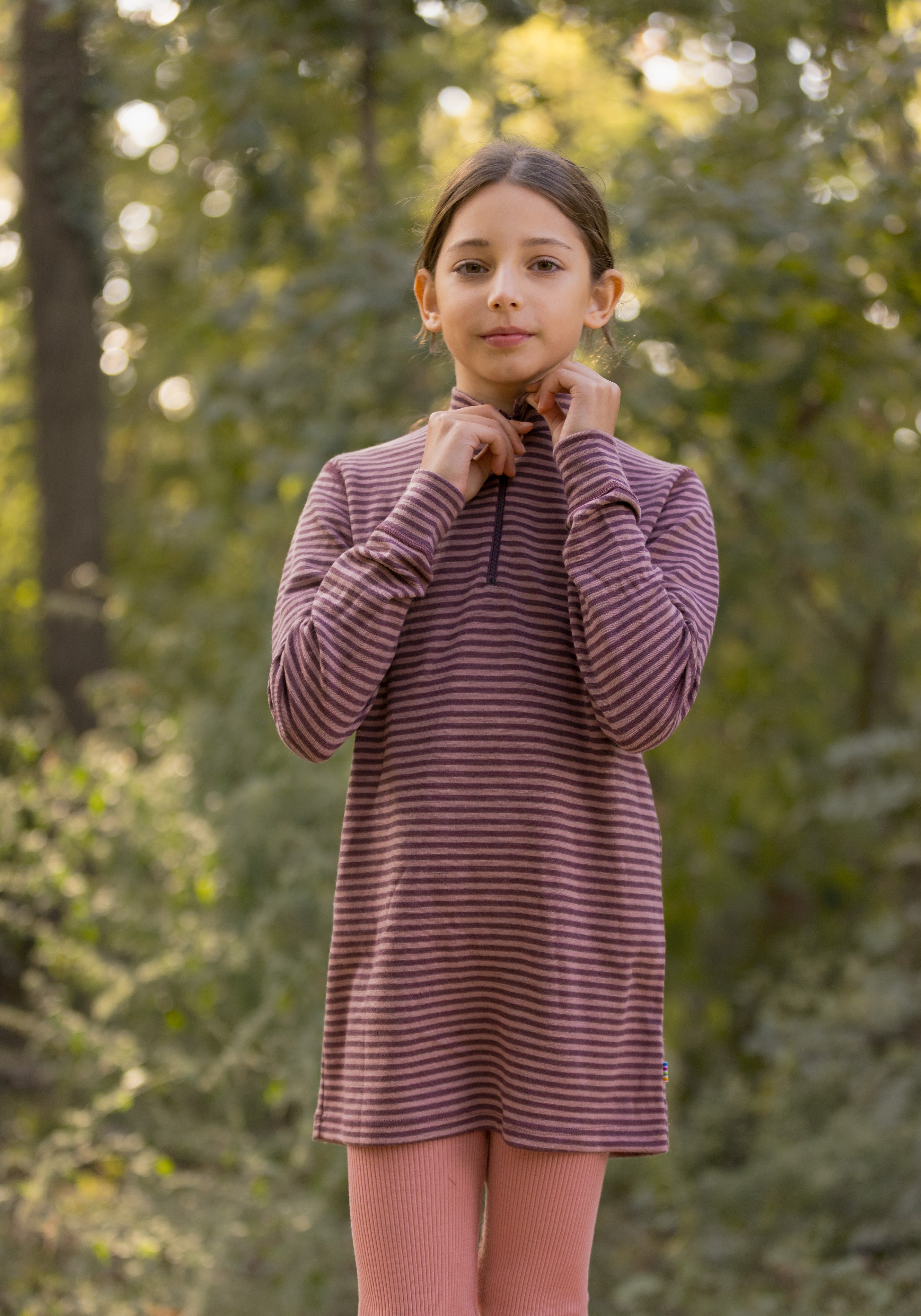 Bluză cu fermoar lână merinos - Mini Stripe Rose