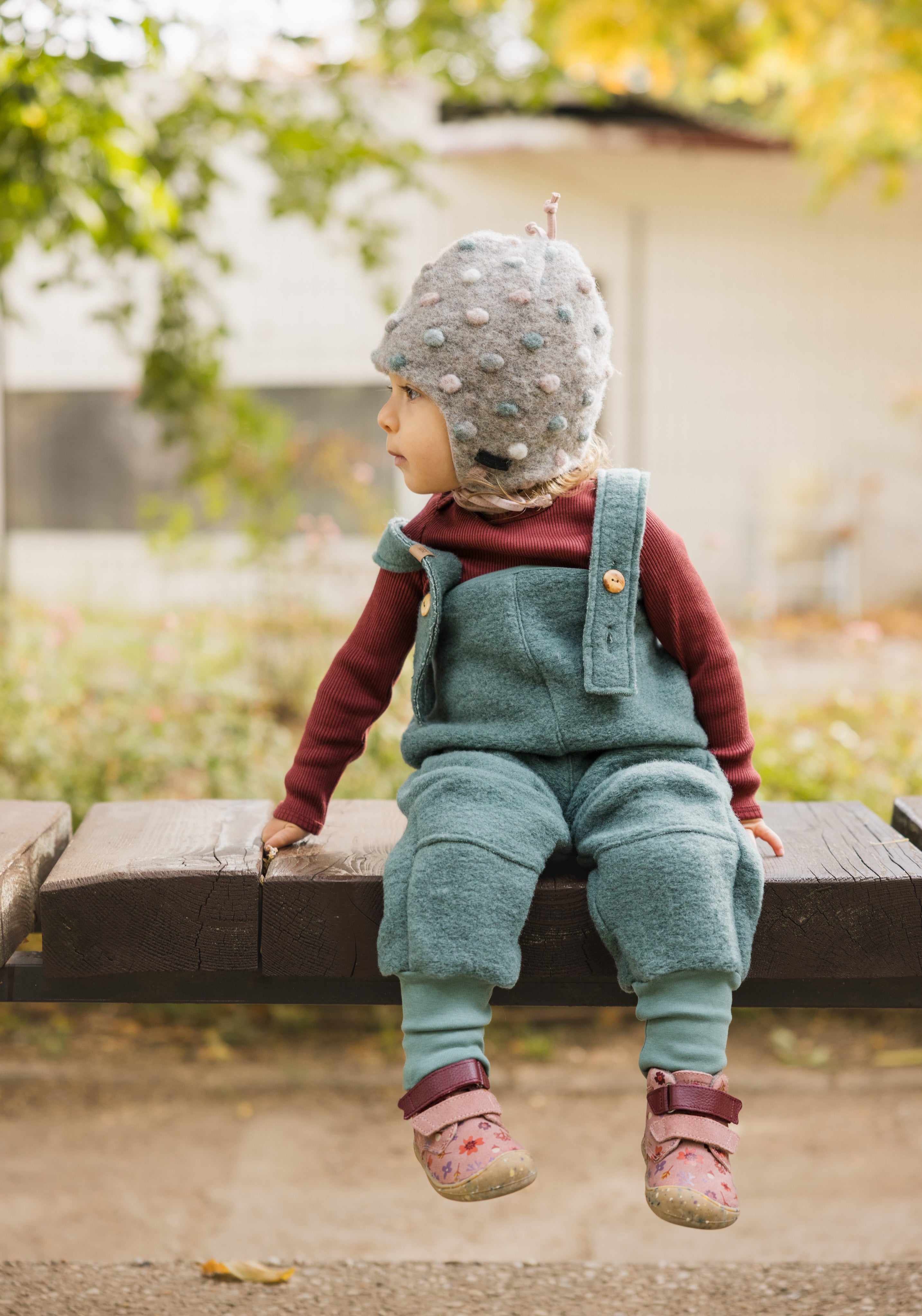 - exterior: 80% lână virgină organică kbT, 20% bumbac organic kbA; knit boiled wool