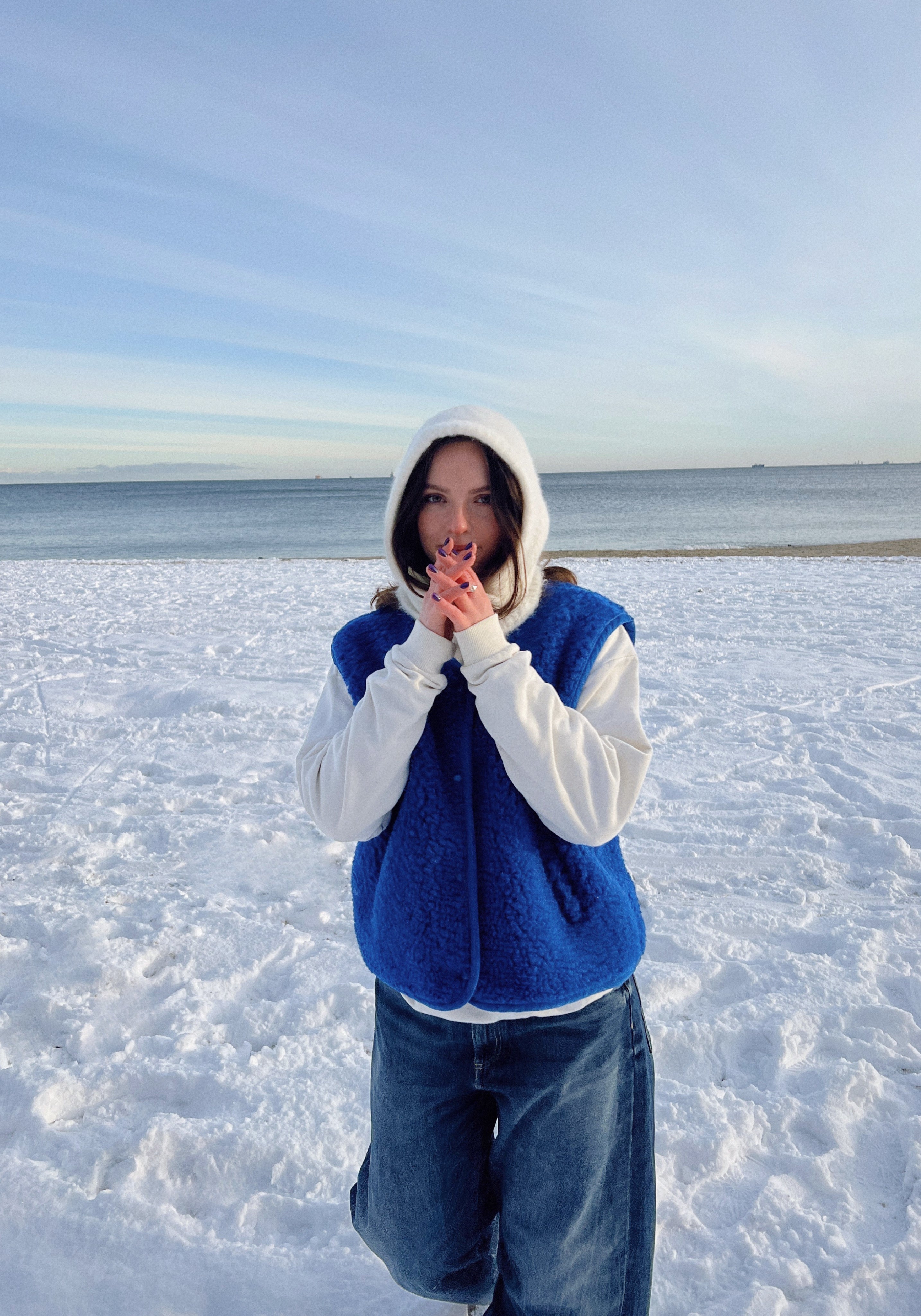 Vestă femei fleece din lână merinos - Teddy Cobalt