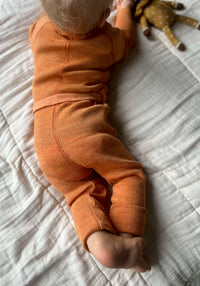 Costum întreg/salopetă din lână merinos, oferă caldură și libertate de mișcare.