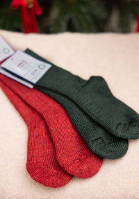 Șosete cu talpă plușată din lână - Poppy Red