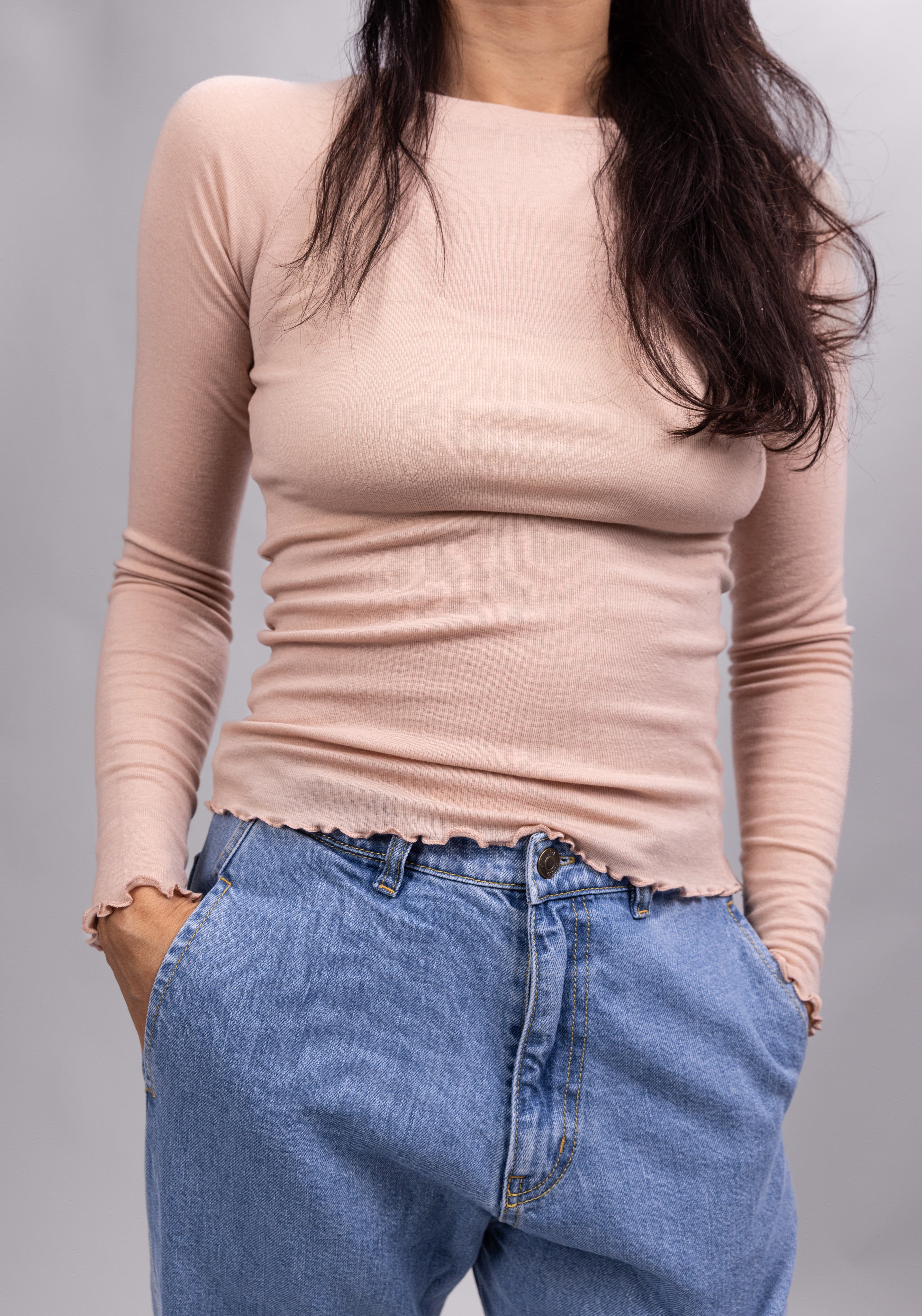 - 70% lână merinos non-mulesing, 30% mătase, jersey knit rib 1*1