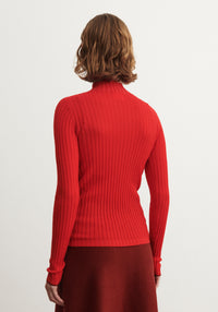 Helancă din lână merinos - Rib Extrafin Signal Red
