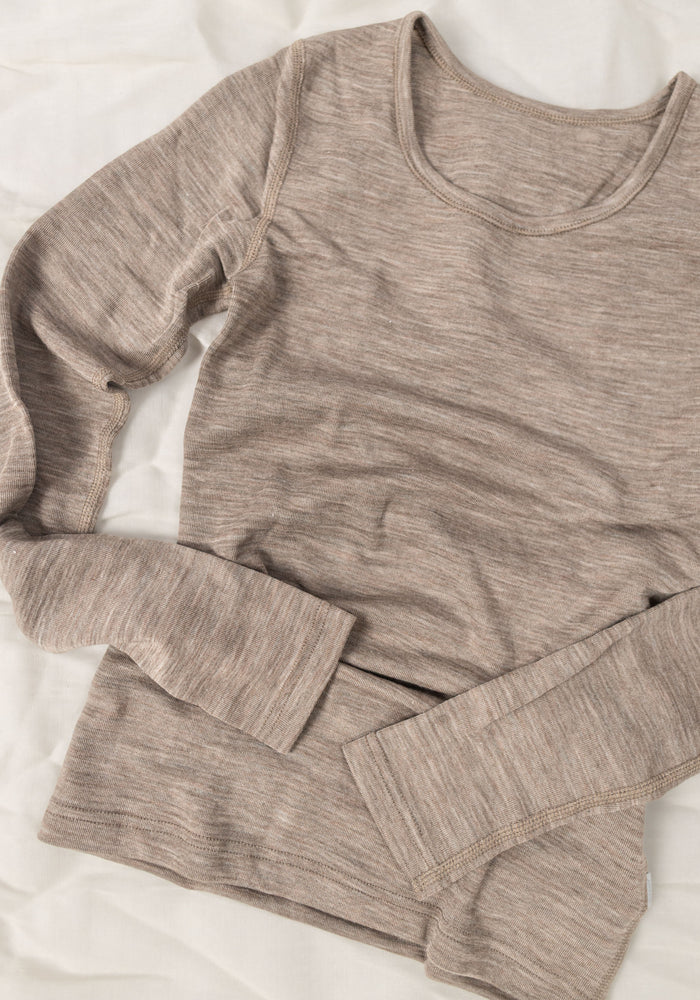 Bluză cu fermoar lână merinos - Dark Brown Melange