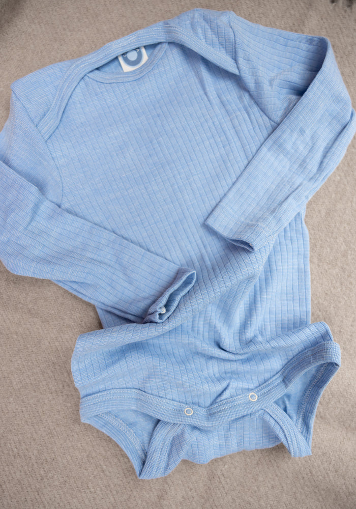 Body seamless din lână merinos, mătase și bumbac - Sky Blue