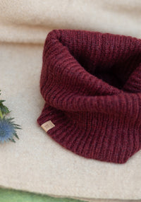 Fular circular femei din baby alpaca, bumbac și lână merinos - Burgundy