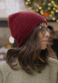 Căciulă femei din baby alpaca, bumbac și lână merinos - Burgundy