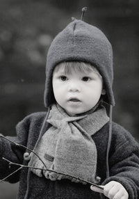 Căciulă moale și călduroasă din fleece din lână merinos organică și bumbac organic, ideală pentru protecție în zilele reci și cu vânt. Materialul natural oferă confort termic și respirabilitate, iar croiala bine gândită asigură o potrivire optimă pe capul copiilor.