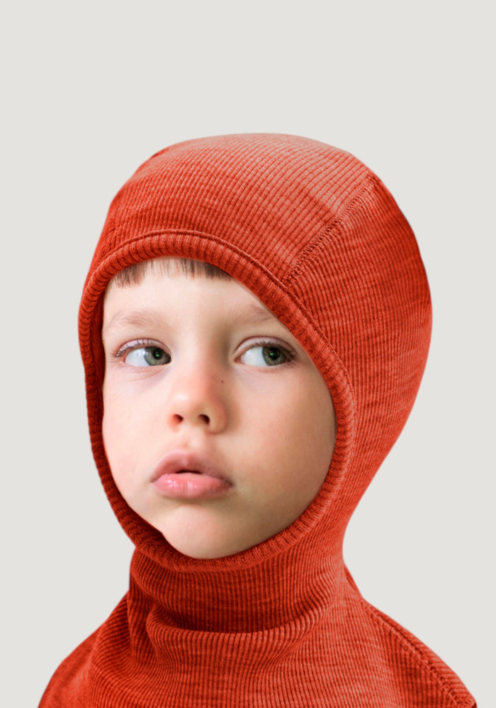 Cagulă dublată reversibilă din lână merinos - Doubleface Rust Melange