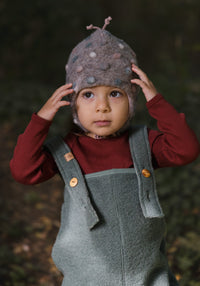 Caciulă groasă și călduroasă din lână organică fiartă, dublată cu bumbac organic la interior.