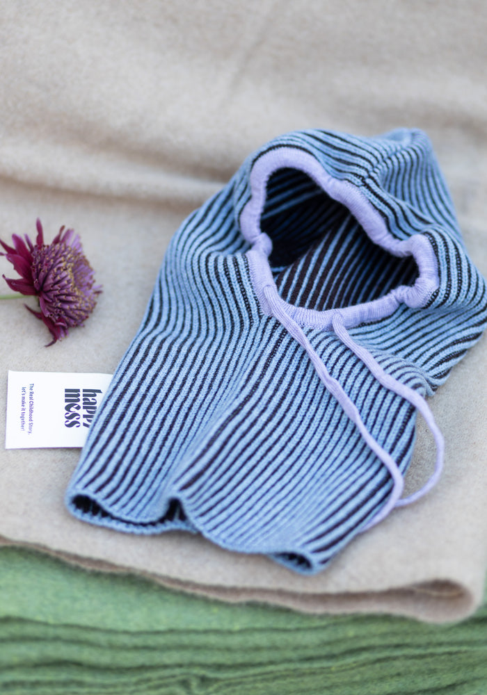 Cagulă dublată reversibilă din lână merinos - Mini Stripe Rose