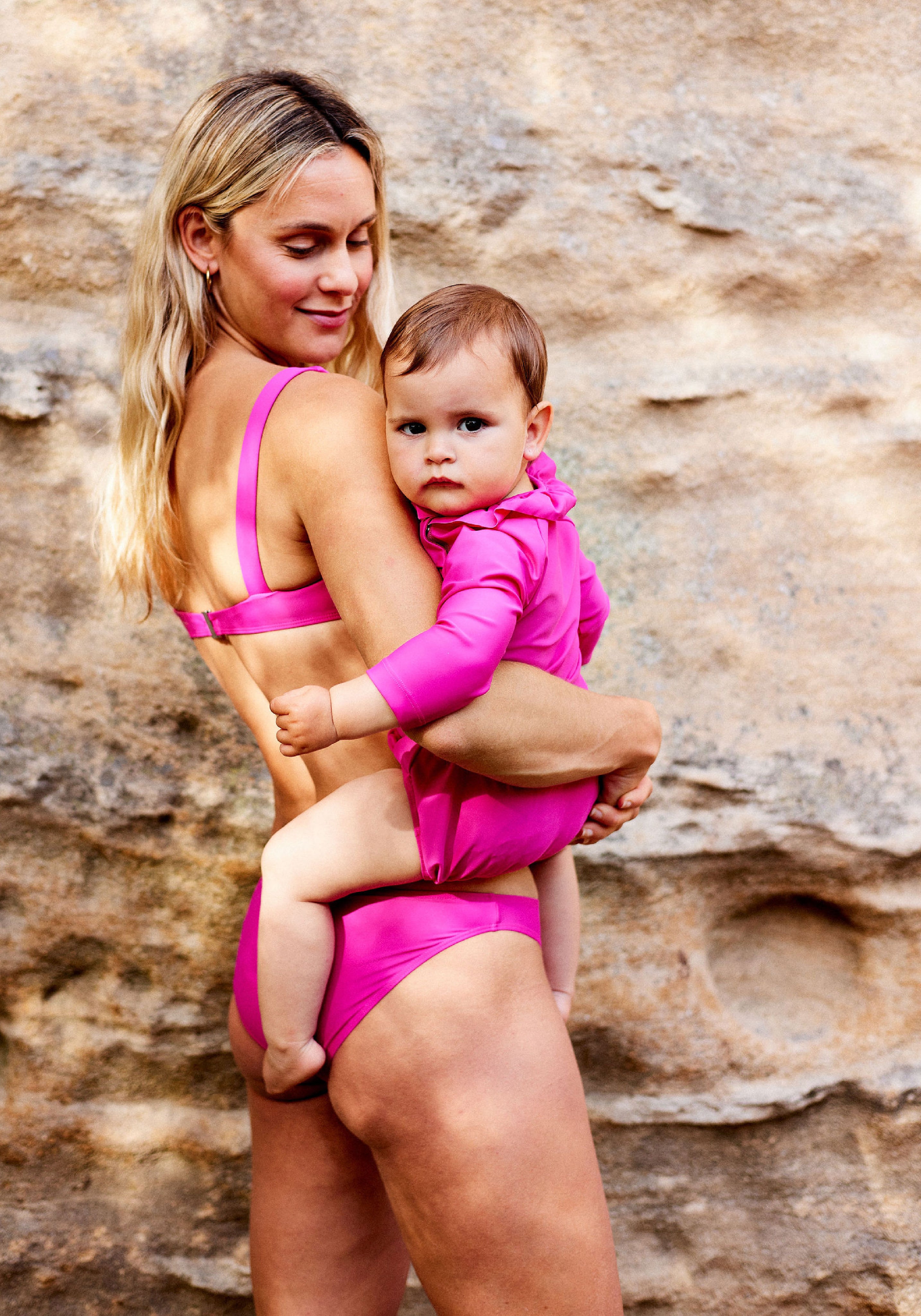 Romper RashGuard cu mânecă lungă, cu protecție UV 50+, produs din fibre reciclate. Cea mai bună protecție UV pentru piele la plajă și în apă, cea mai blândă variantă pentru planetă.