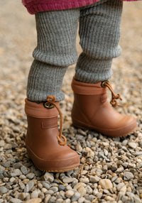 Cizme scurte pentru primii pași din cauciuc natural, căptușite cu lână, izolează foarte bine și mențin picioarele uscate și calde. Le recomandăm în special pentru toamnă târzie și iarnă.
