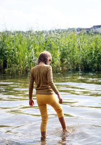 Colanți seamless din lână merinos organică, bumbac organic și mătase.
