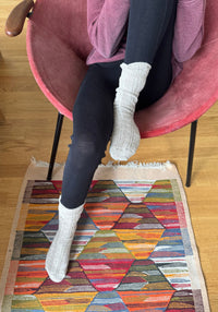 Colanți care combină calitățile lânii merinos cu mătasea foarte fină, ideală pentru cei cu pielea sensibilă.
