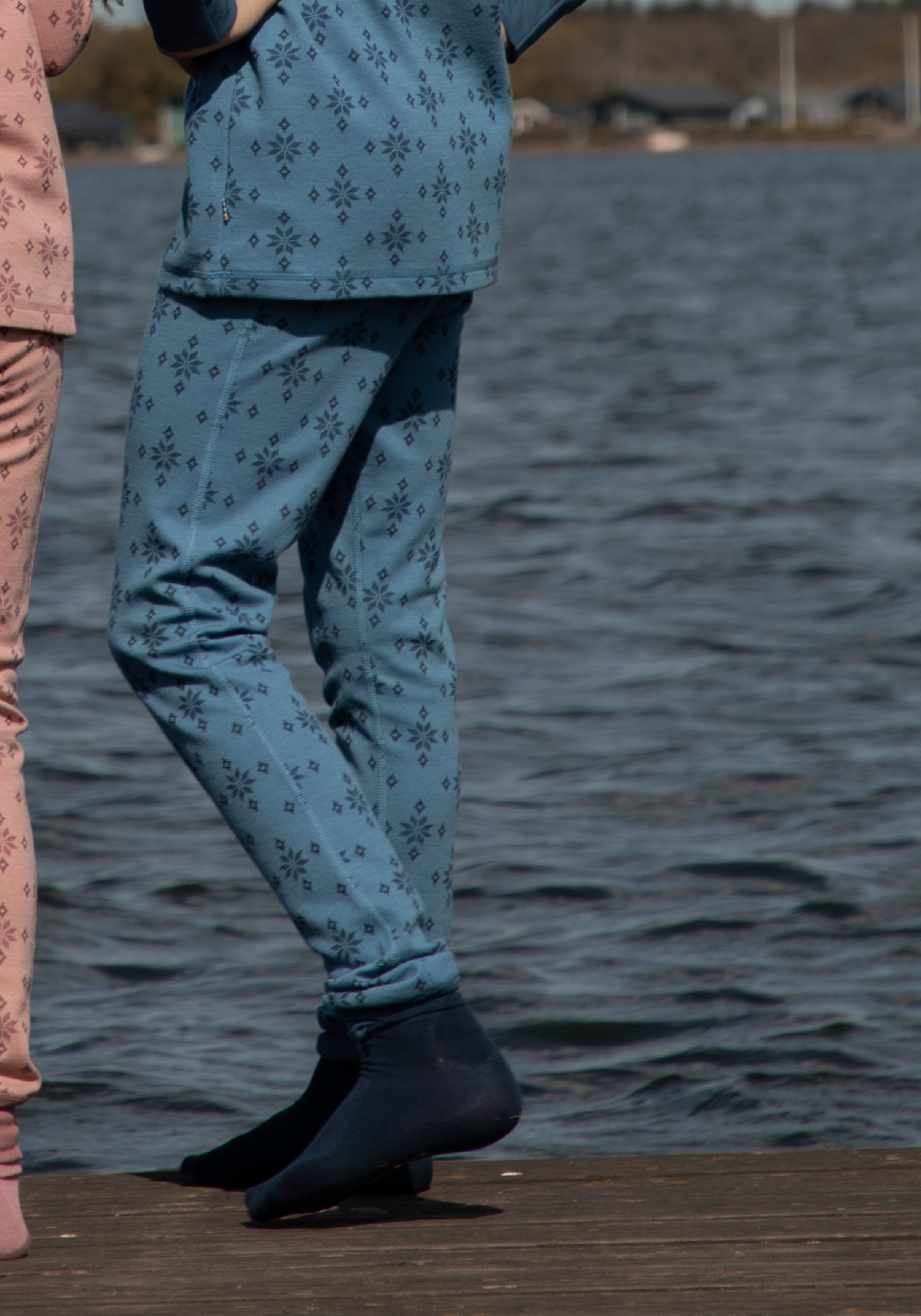 Colanți cu două straturi, lână merinos superfină la exterior și bumbac organic la interior, ideali pentru pielea sensibilă.