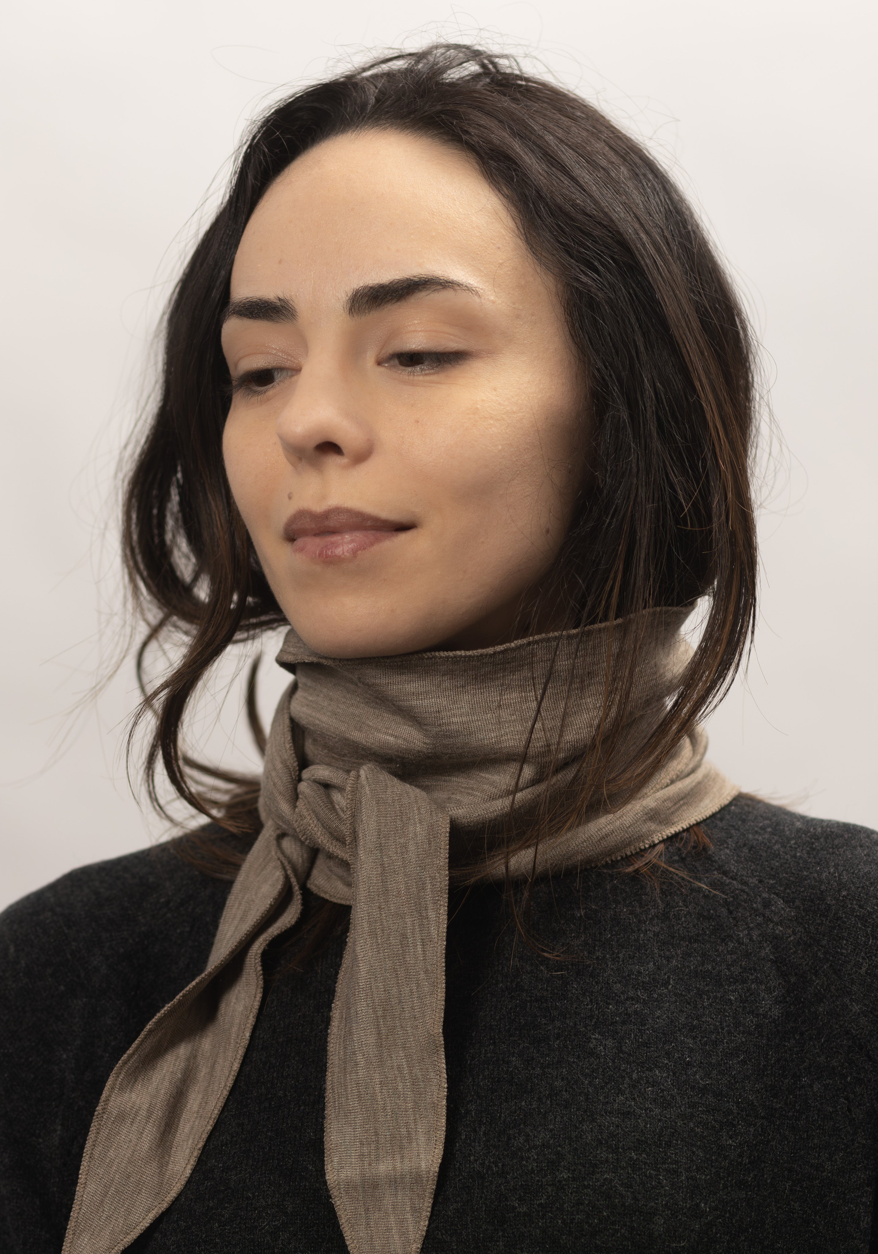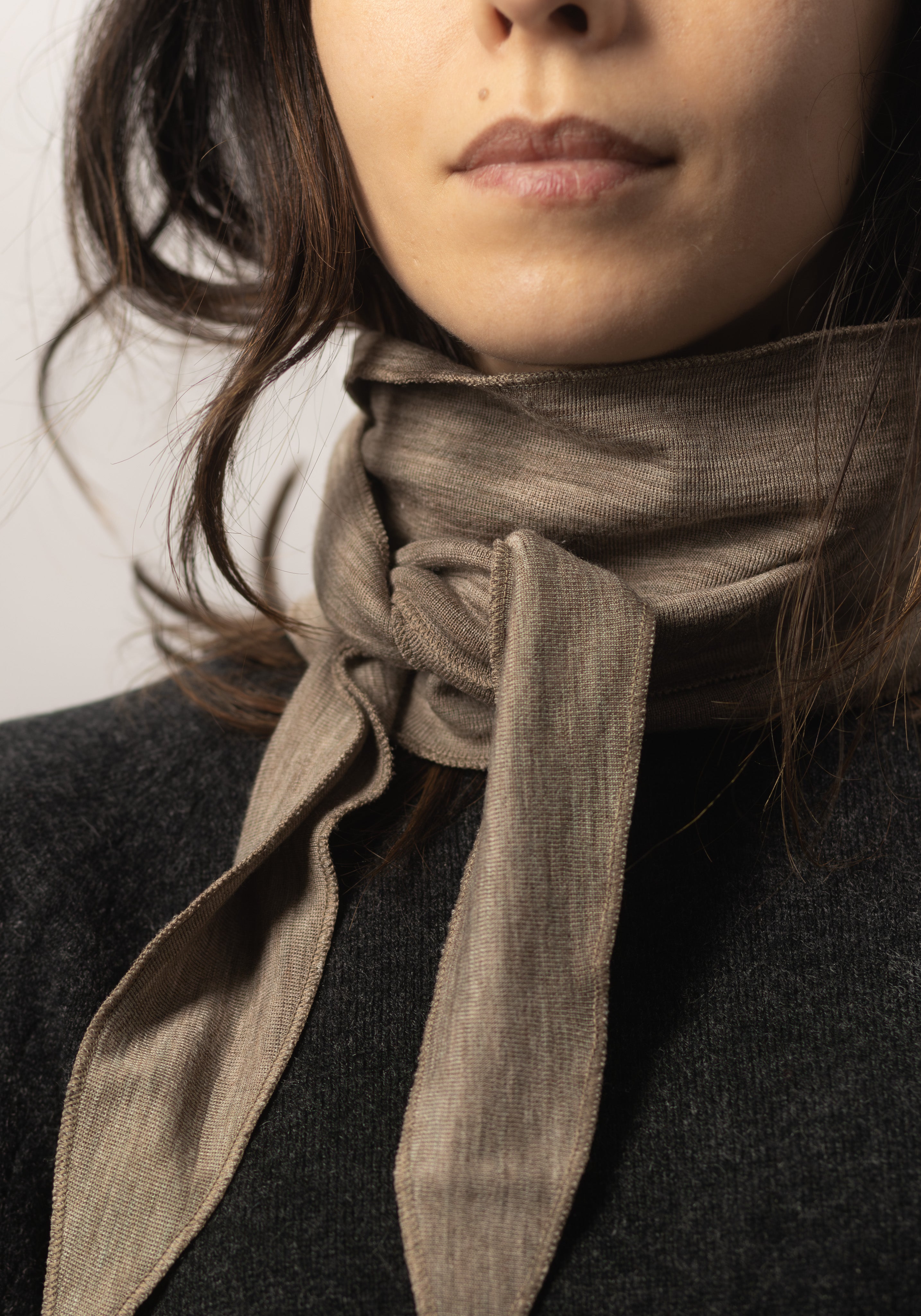 Eșarfă dublată din lână merinos și mătase - Beige Melange