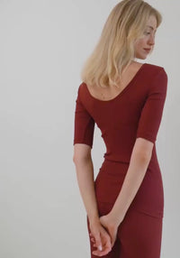 Bluză seamless, cu spatele decoltat și mânecă 3/4 din mătase și bumbac, foarte elastică și comodă, se așază perfect.