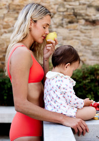 Sutien înot pentru femei, cu protecție UV 50+, produs din fibre reciclate. Ladies, iubesc Canopea: design pe sufletul meu și impact redus asupra planetei. Chic, retro, curat și fabricat din plase de pescuit recuperate din oceane.