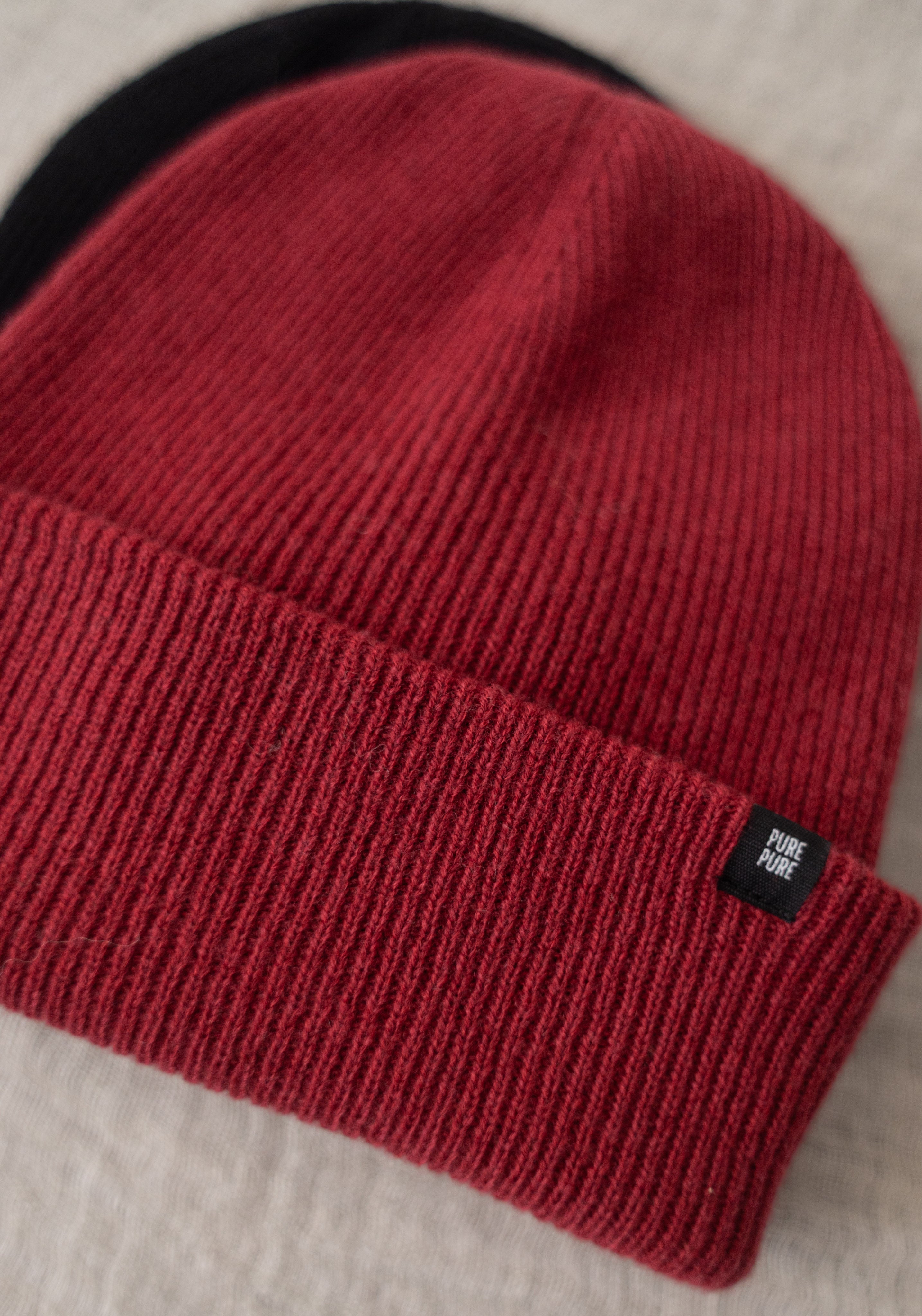 Căciulă Rib femei din lână merinos și cașmir - Berry Red