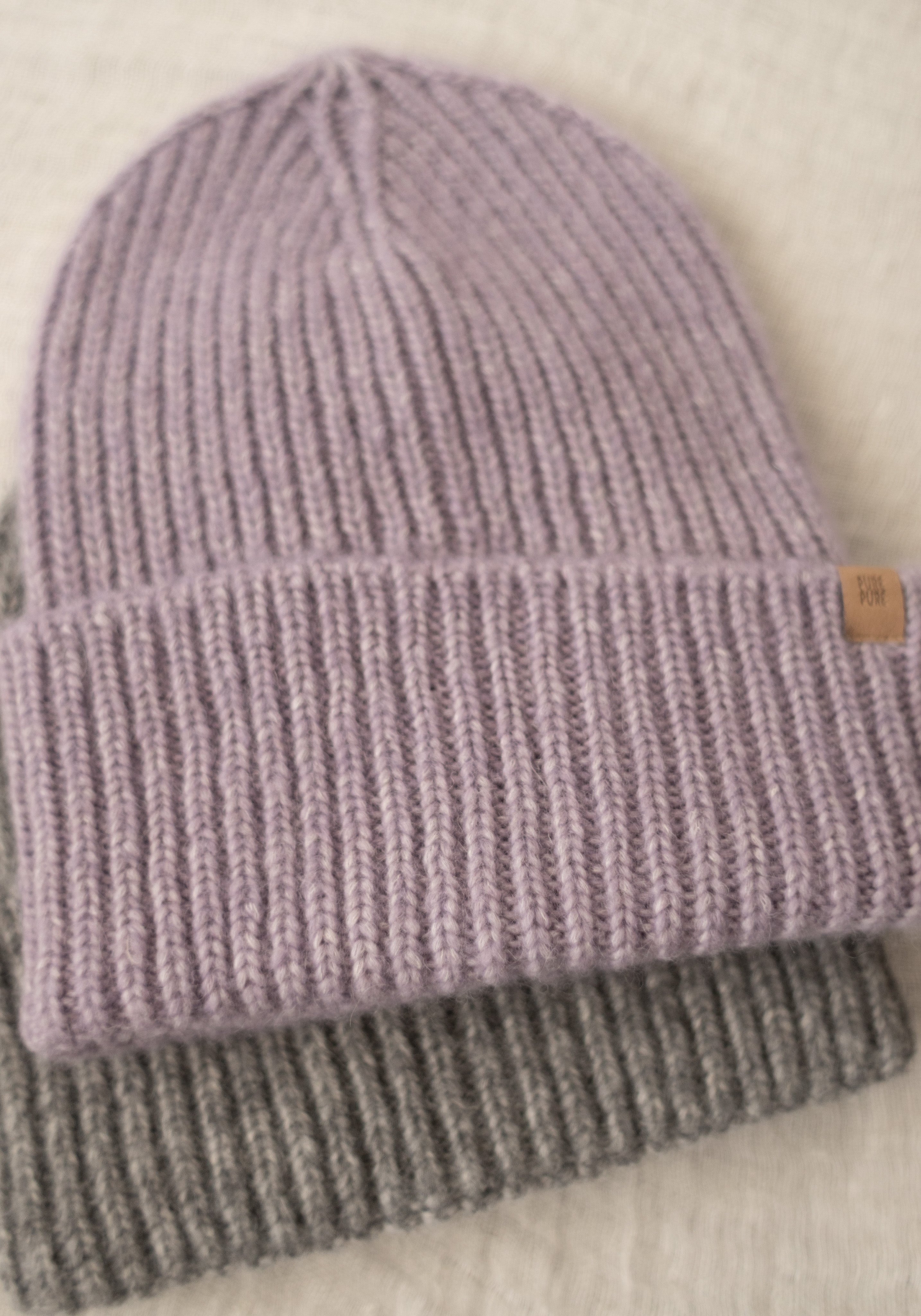 Căciulă Rib femei din baby alpaca, bumbac și lână merinos - Lilac