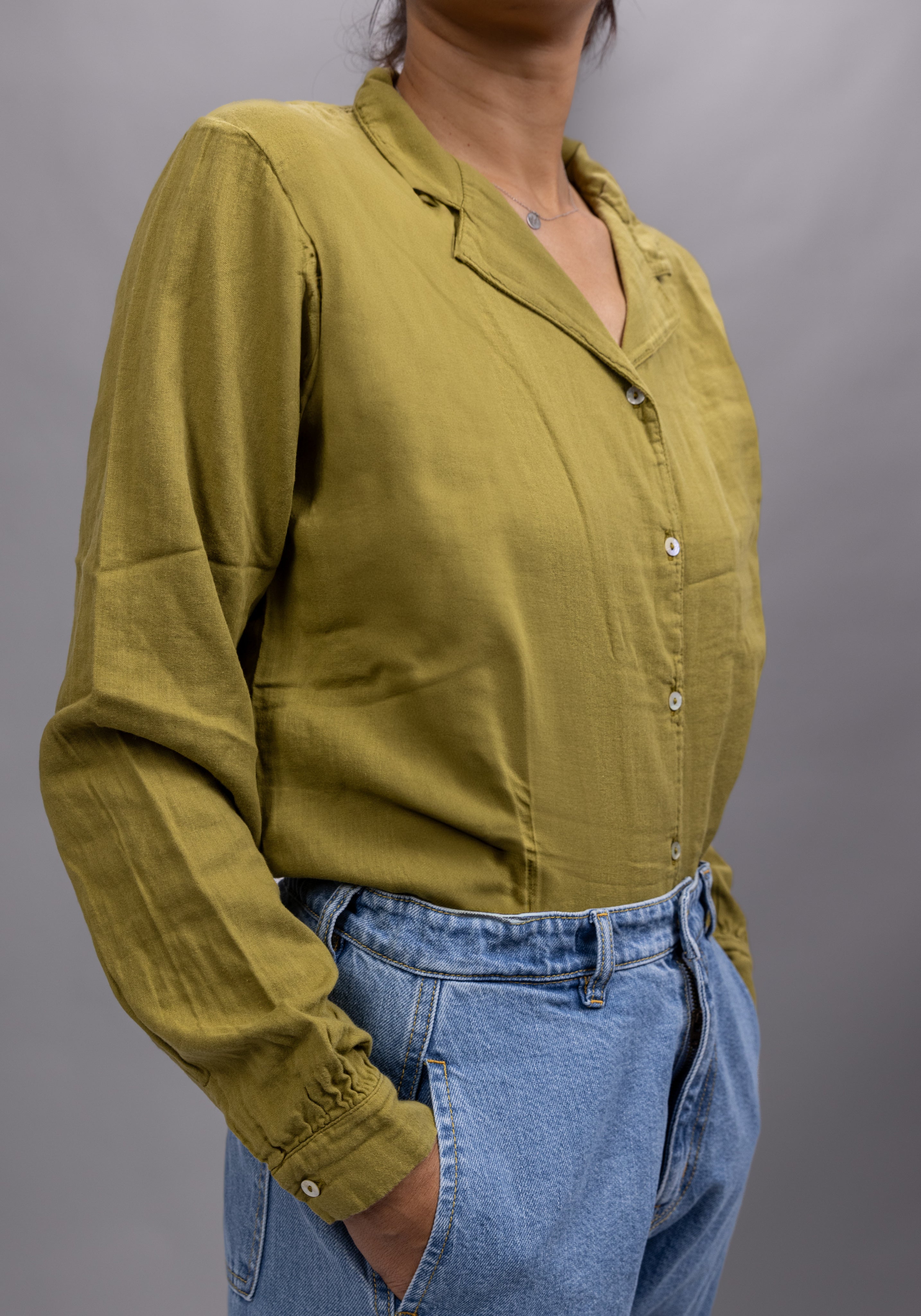 Cămașă femei din muselină dublă de bumbac - Datte Green Moss