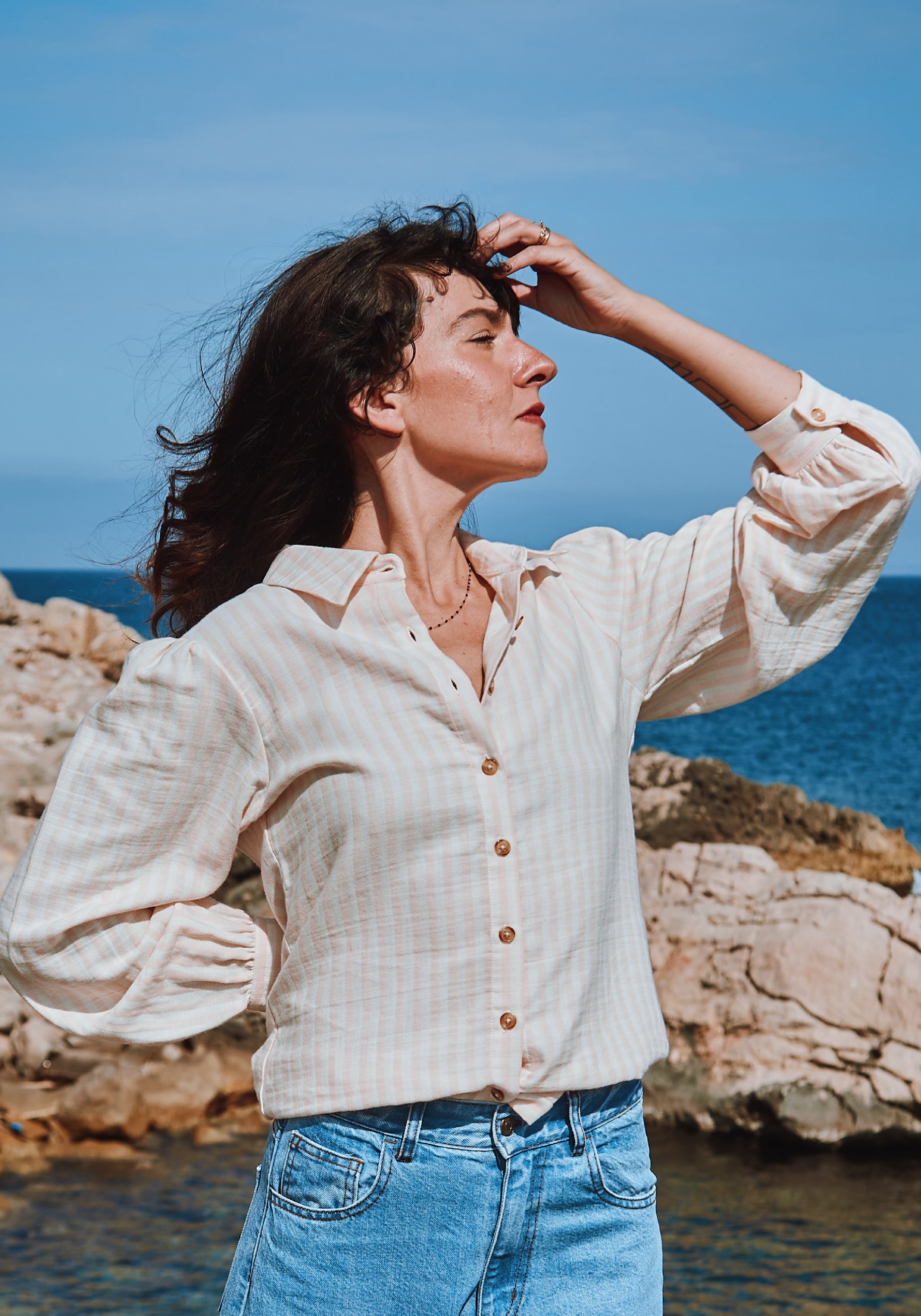 Cămașă femei din muselină dublă de bumbac - Aulne Rayures Bellini