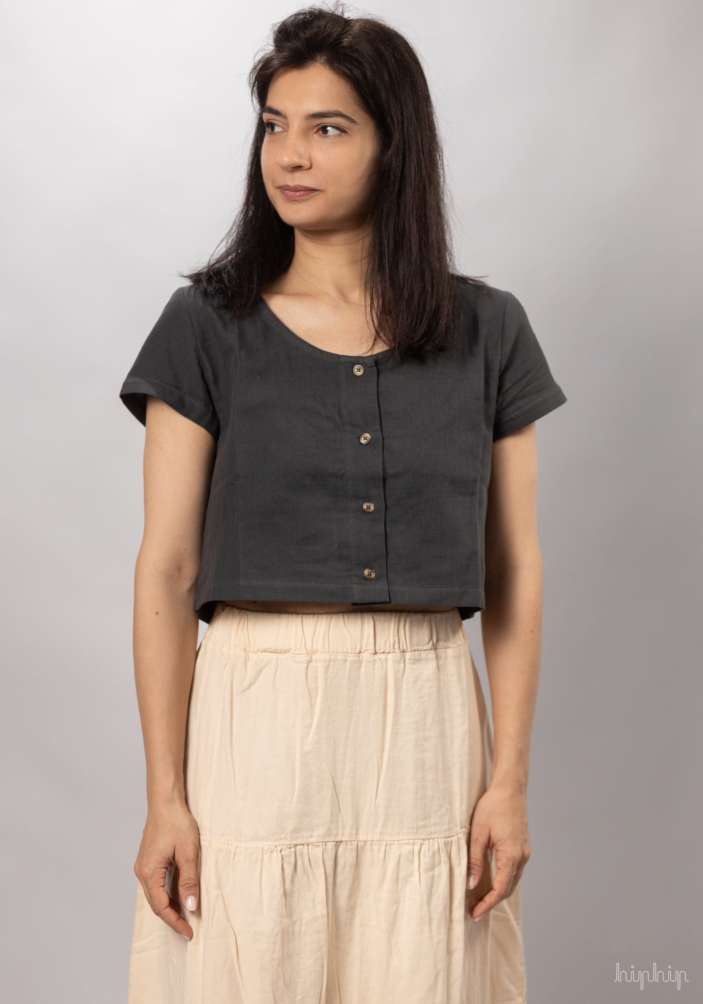 Cămașă femei din muselină dublă de bumbac - Freesia Pirate Black