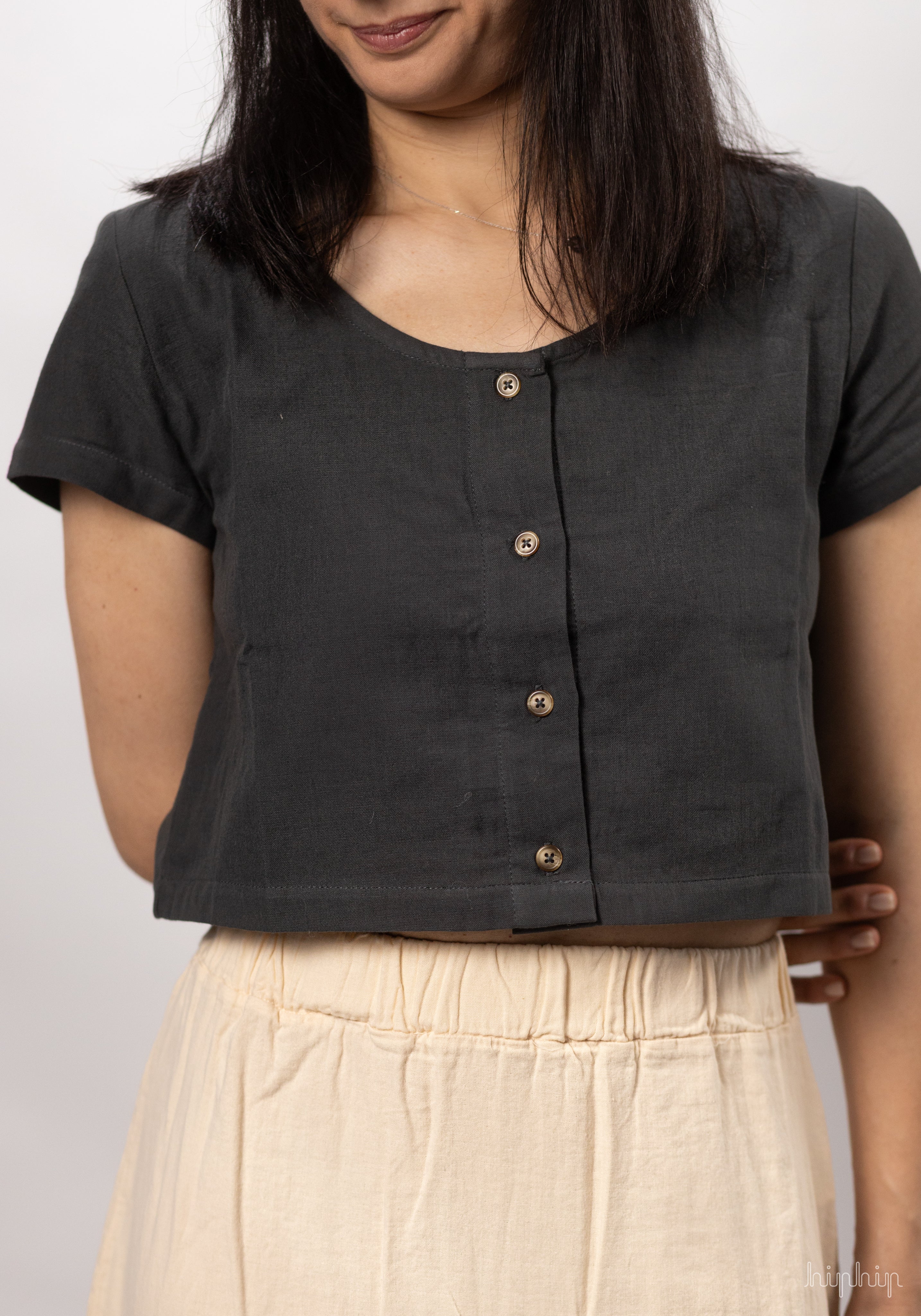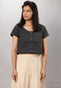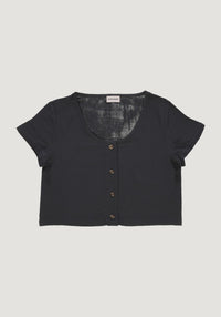Cămașă cu mânecă scurtă din muselină dublă din bumbac organic, cu un design minimalist.