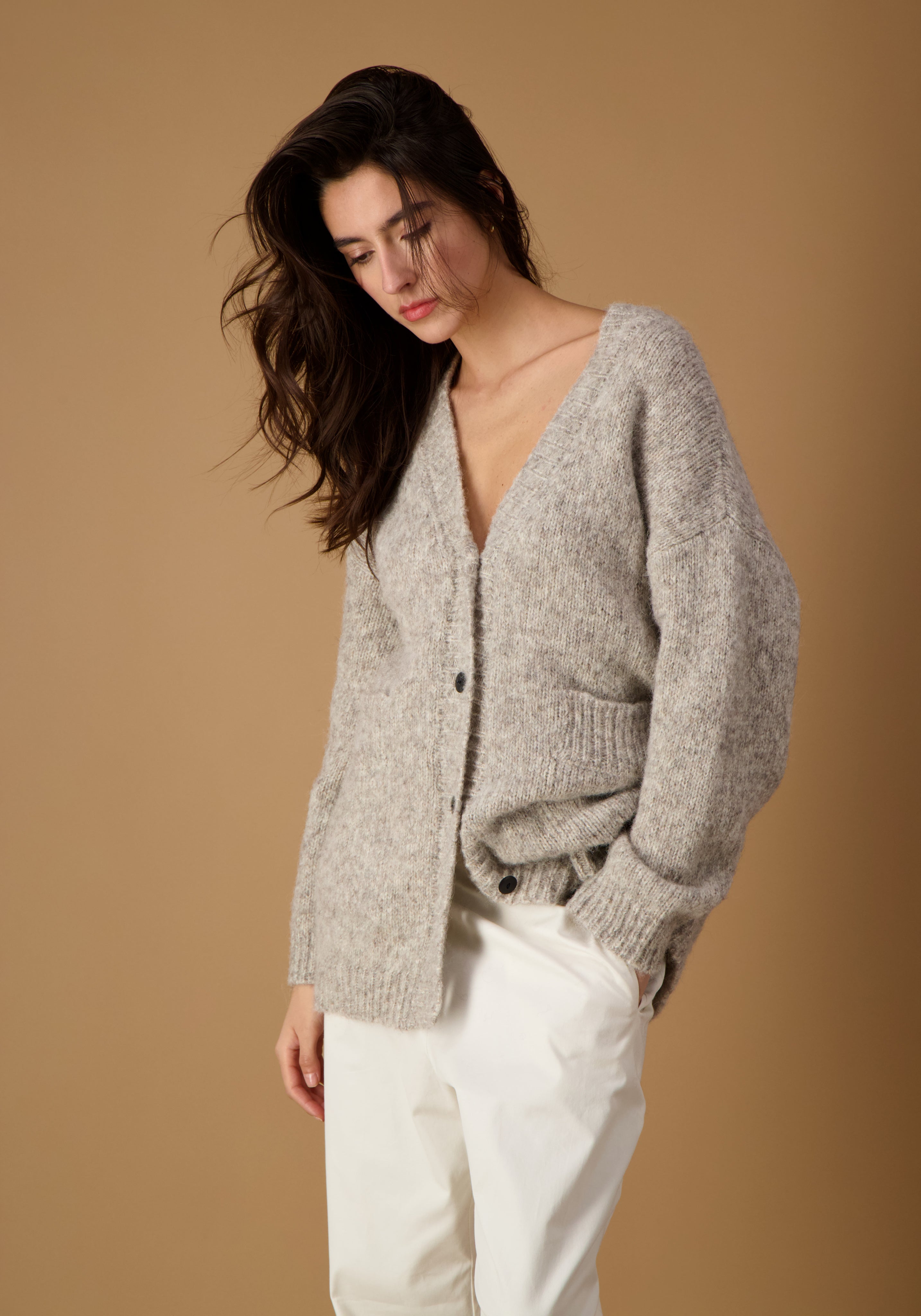 Cardigan supersoft din blend de lână alpaca fină și rezistentă și bumbac organic Pima. Este potrivit pentru cei cu pielea sensibilă. Design simplu, atemporal, minimalist.