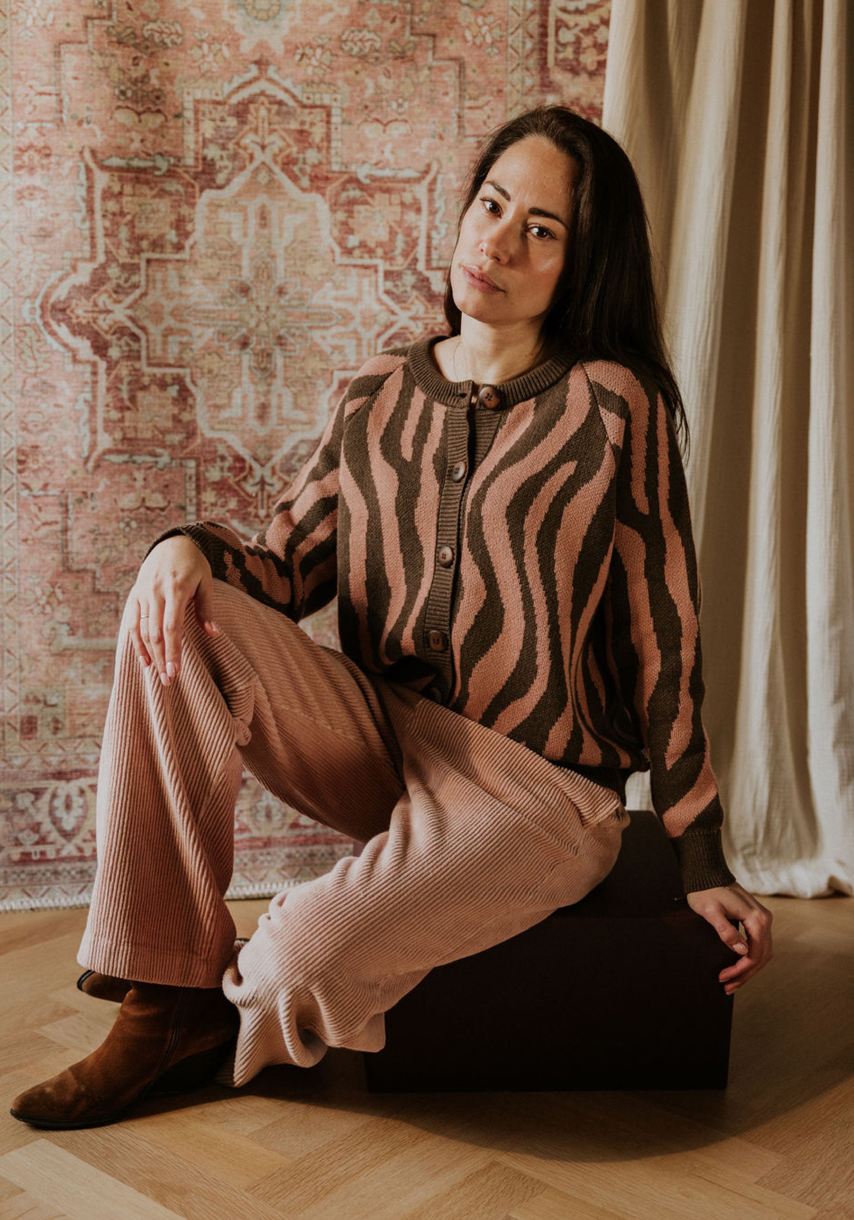 Cardigan Raglan tricotat femei din bumbac - Pink Zebra