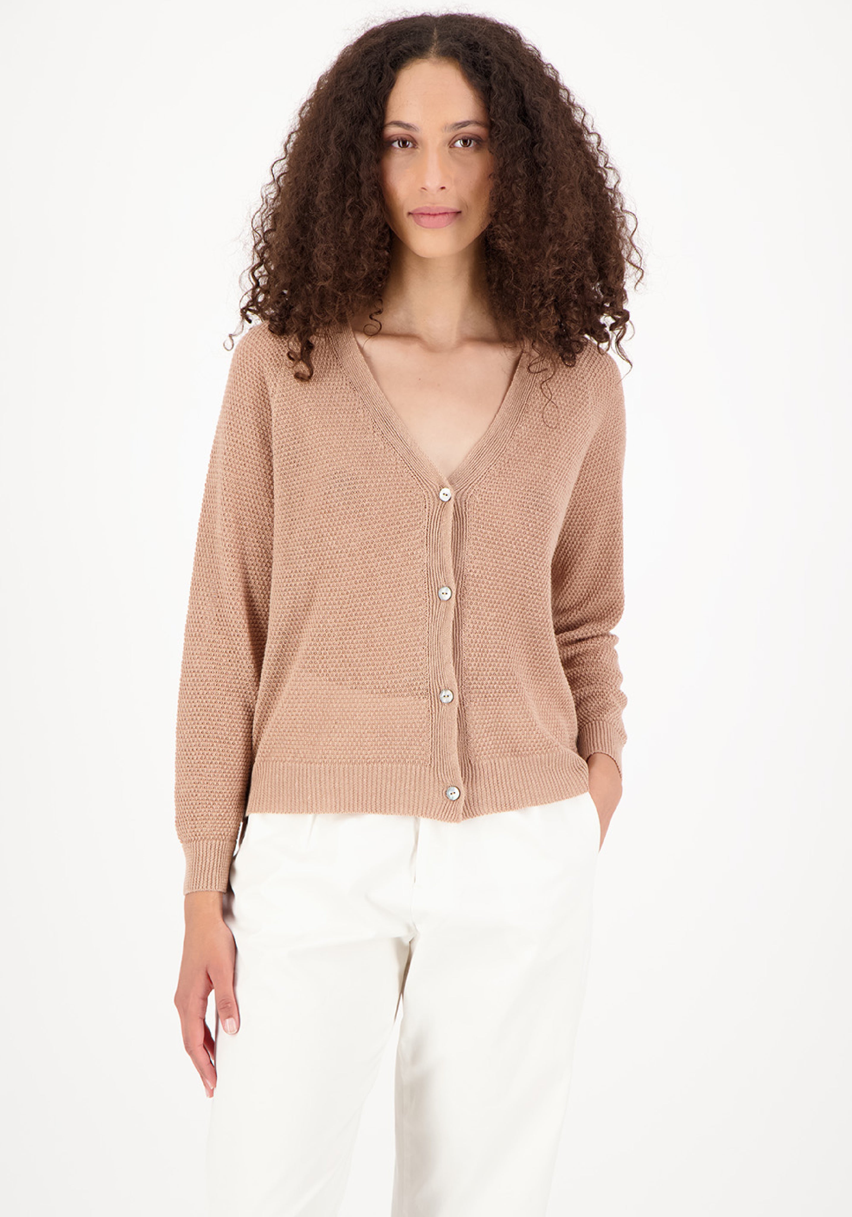 Cardigan femei tricotat din in și bumbac - Elsa Beige