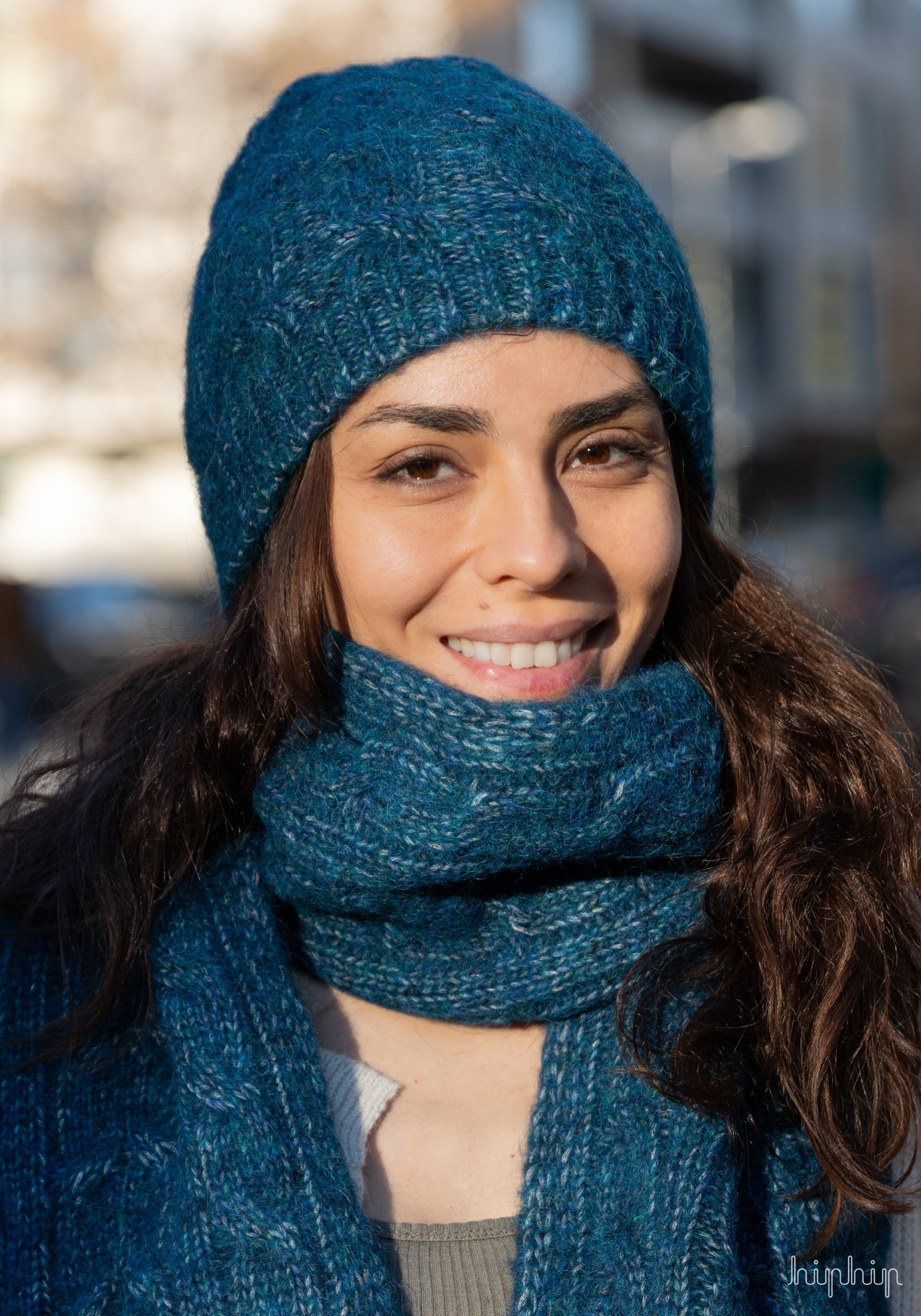 Fular lung pentru adulți, din blend de lână alpaca și bumbac organic Pima.