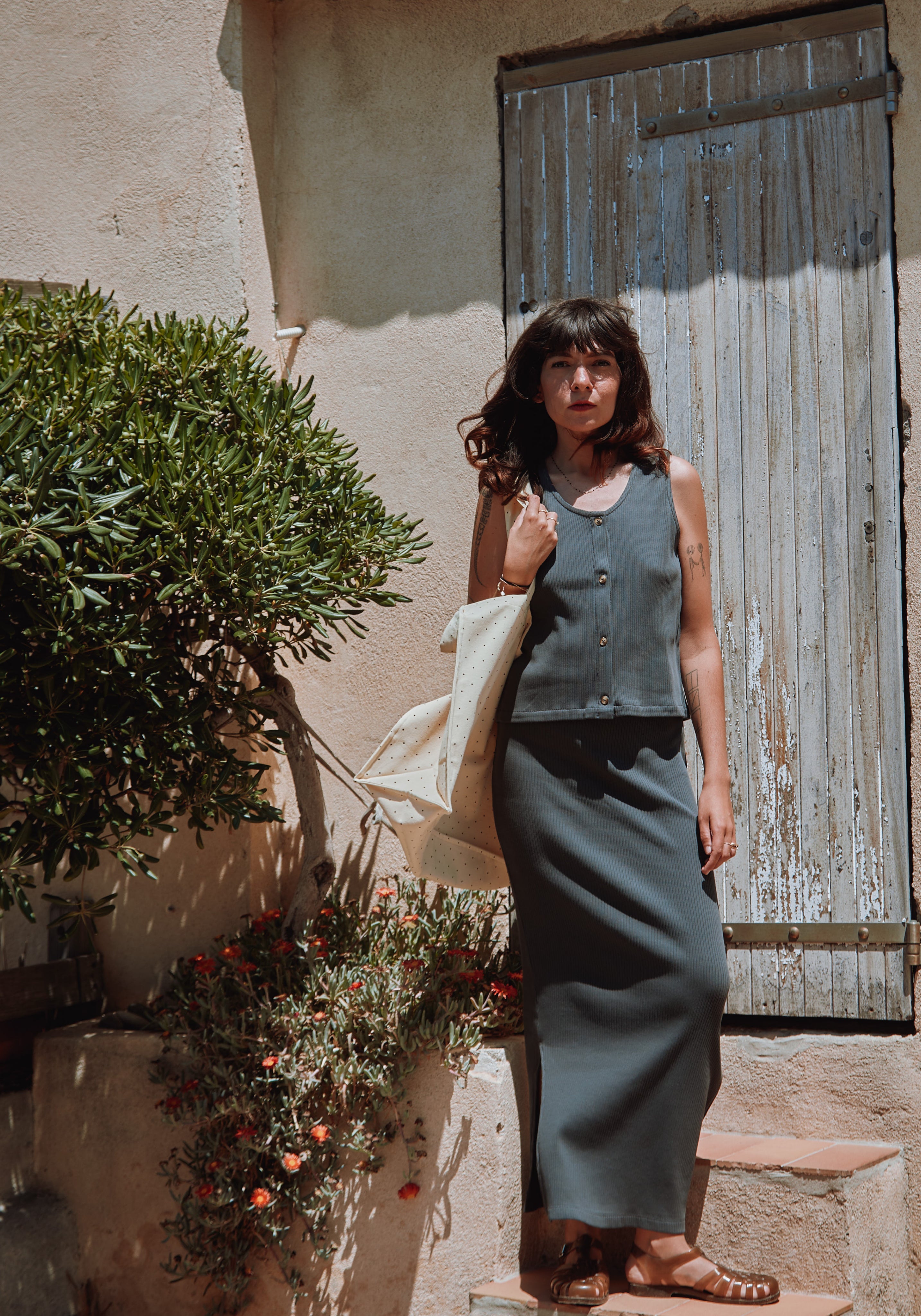 Când vine vorba de decizii ”de business”, Manon și Quentin țin cont în primul rând de impactul asupra mediului. Le vine ușor, pentru că și în viață personală sunt ghidați de principiul ăsta - consum local și rațional. Lucrează, în principal, cu bumbac cultivat organic în Turcia, certificat GOTS și OEKO-TEX, dar și cu in și materiale reciclate, prelucrate cu consum minim de energie.