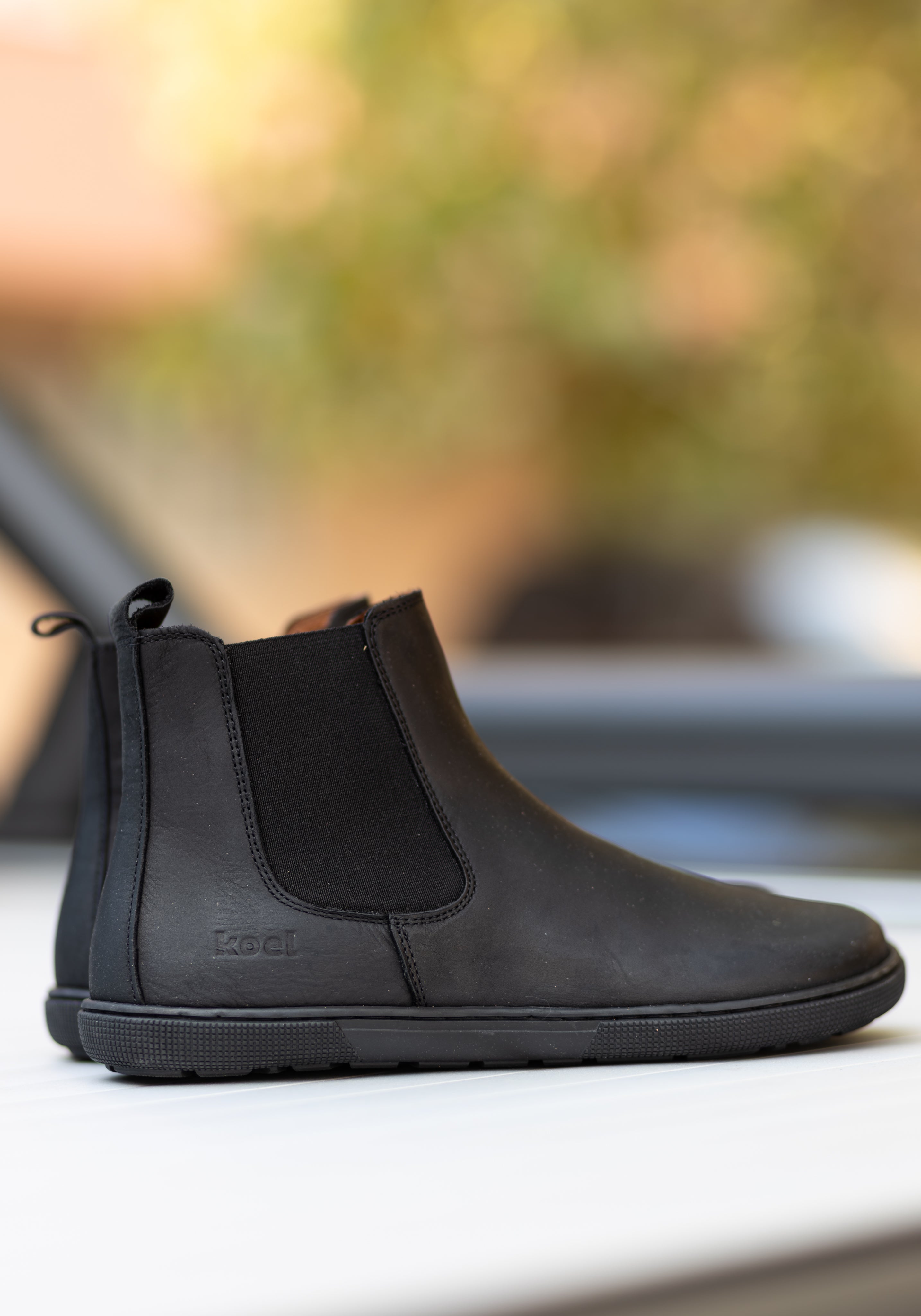 Chelsea Boots în stil barefoot, realizate din piele naturală cu tratament water-repellent, căptușite cu piele naturală vopsită cu coloranți vegetali, fără chrom. Le recomandăm în special pentru toamnă și iarnă.