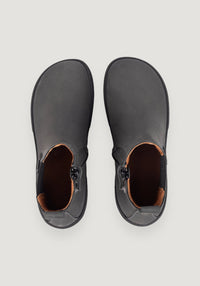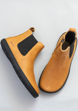 Chelsea Boots în stil barefoot, realizate din piele naturală cu tratament water-repellent, căptușite cu piele naturală vopsită cu coloranți vegetali, fără chrom. Le recomandăm în special pentru toamnă și iarnă.