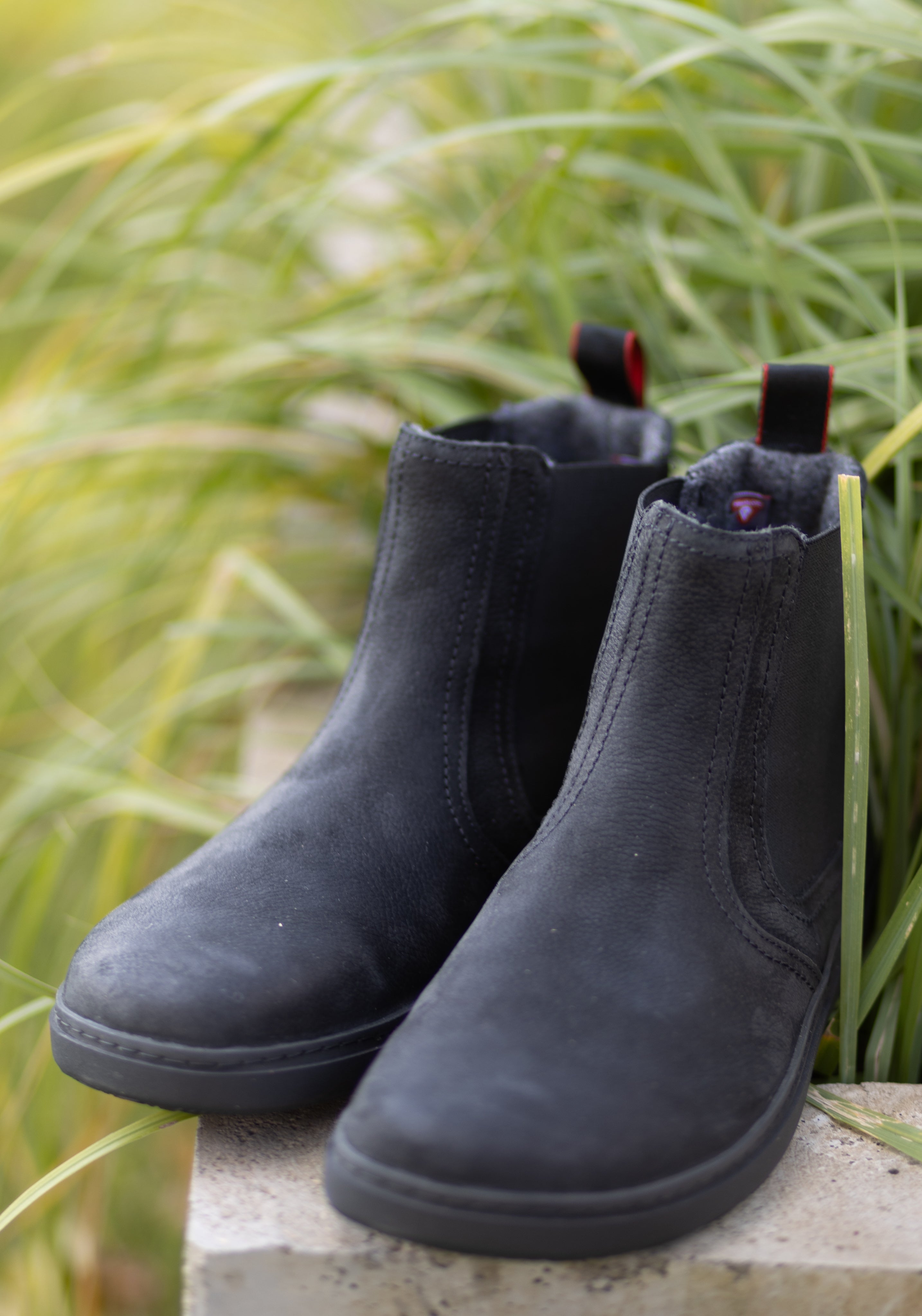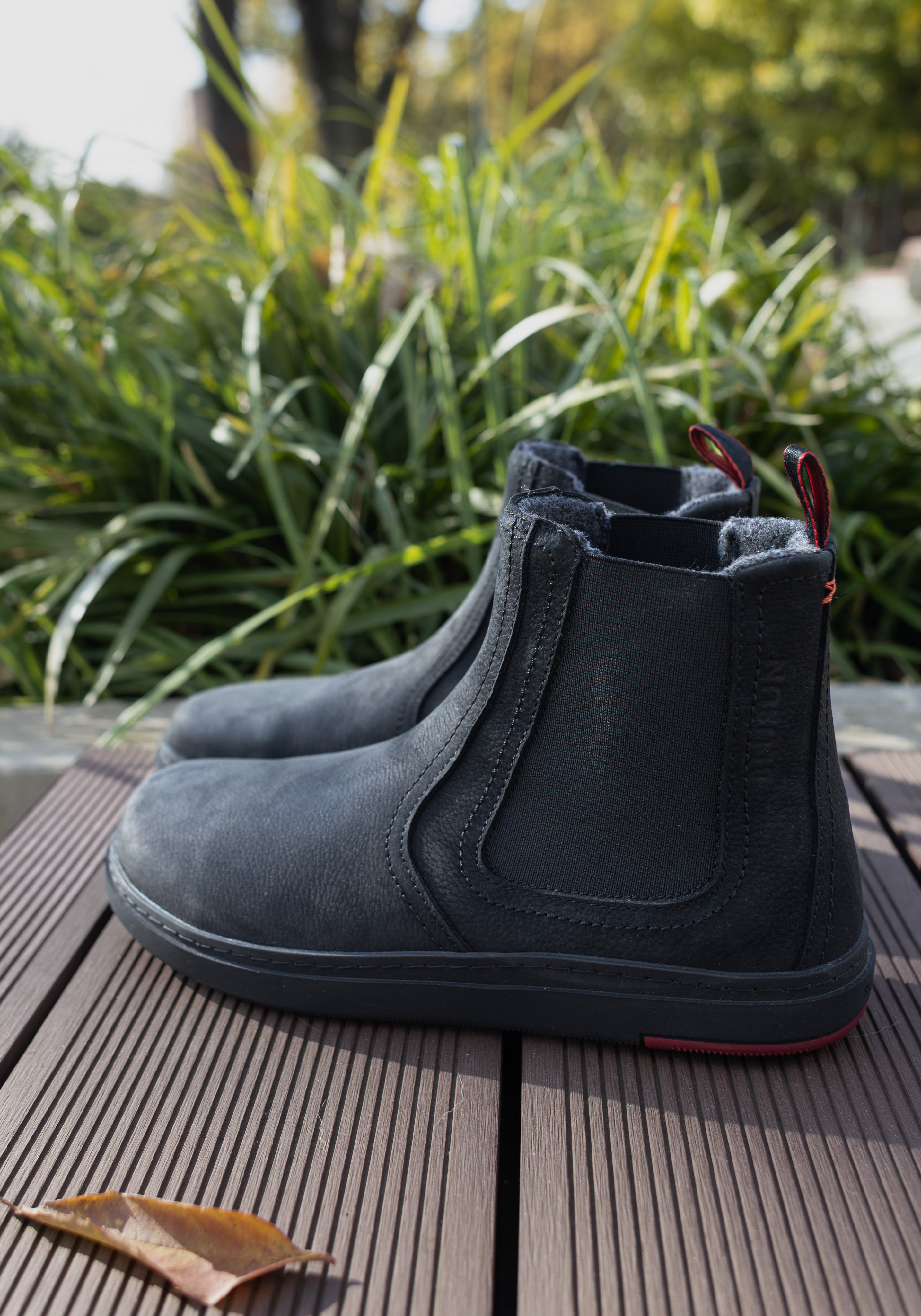 Ghete barefoot din piele năbuc water-repellent, căptușite cu lână feltuită și strat izolator Primaloft. Le recomandăm în special pentru toamnă și iarnă.