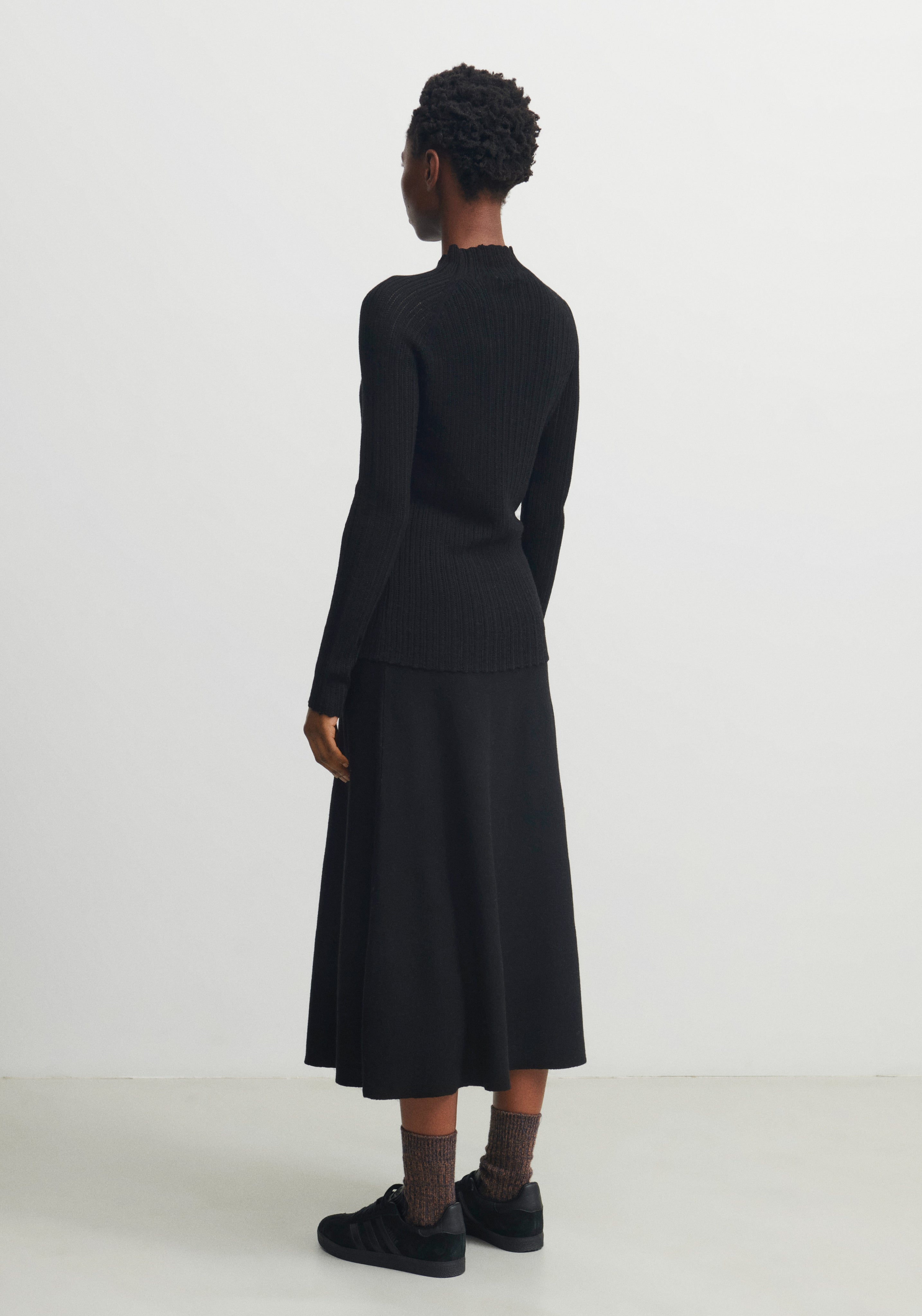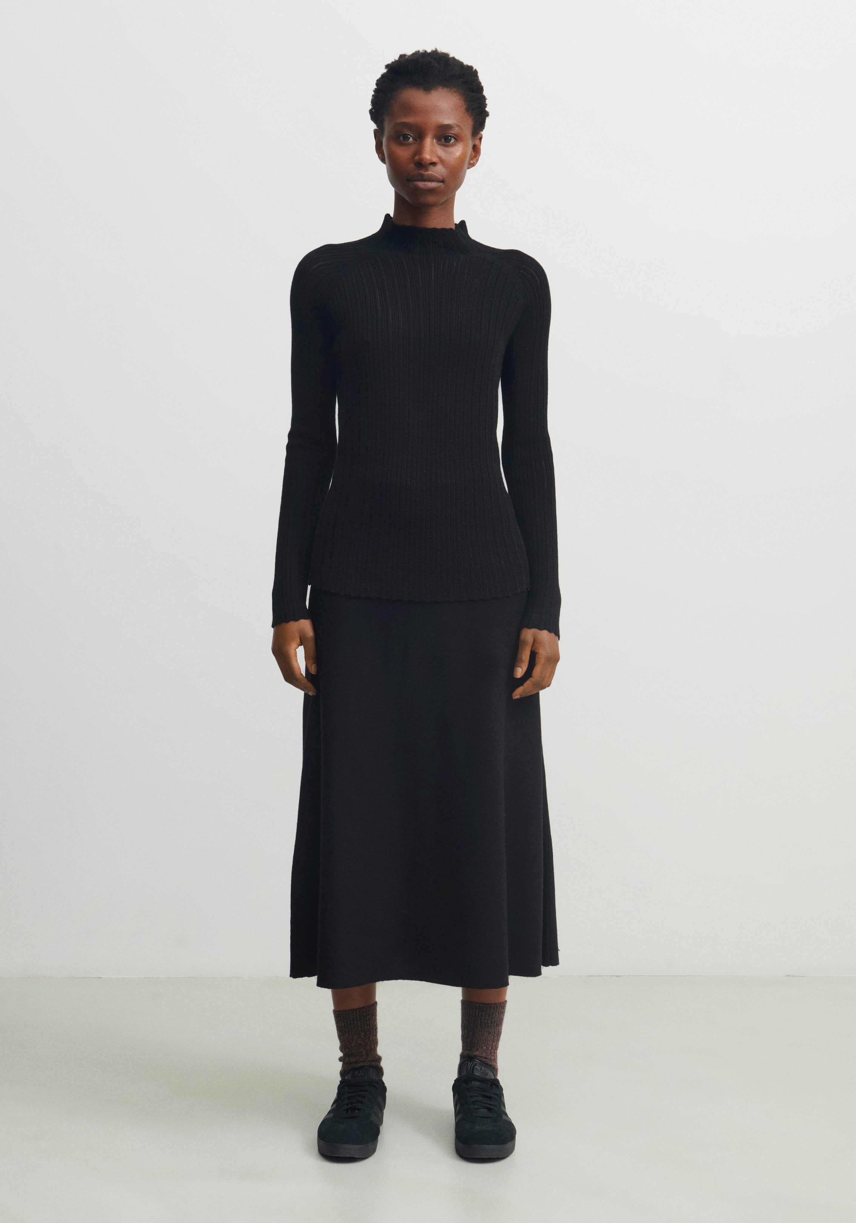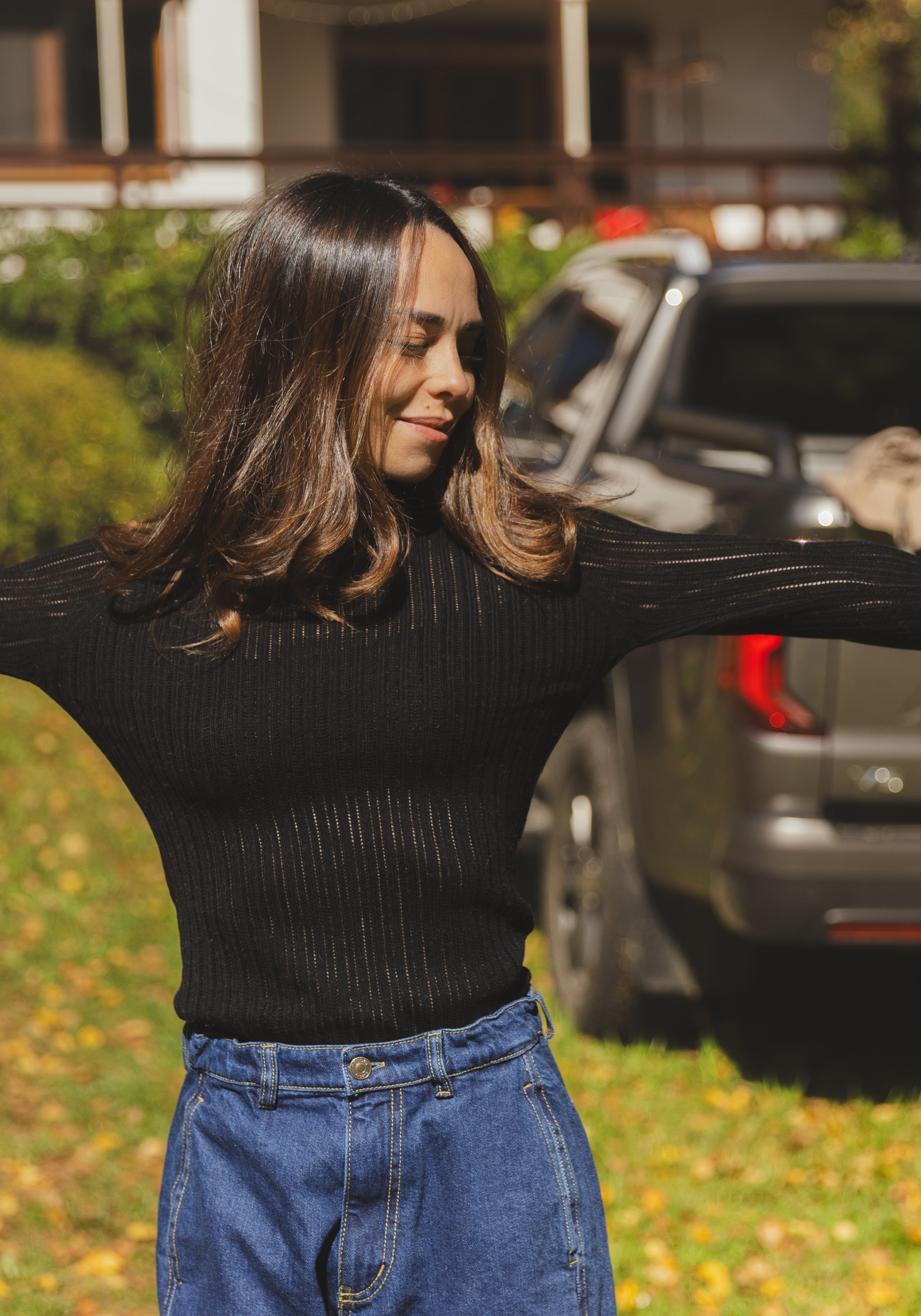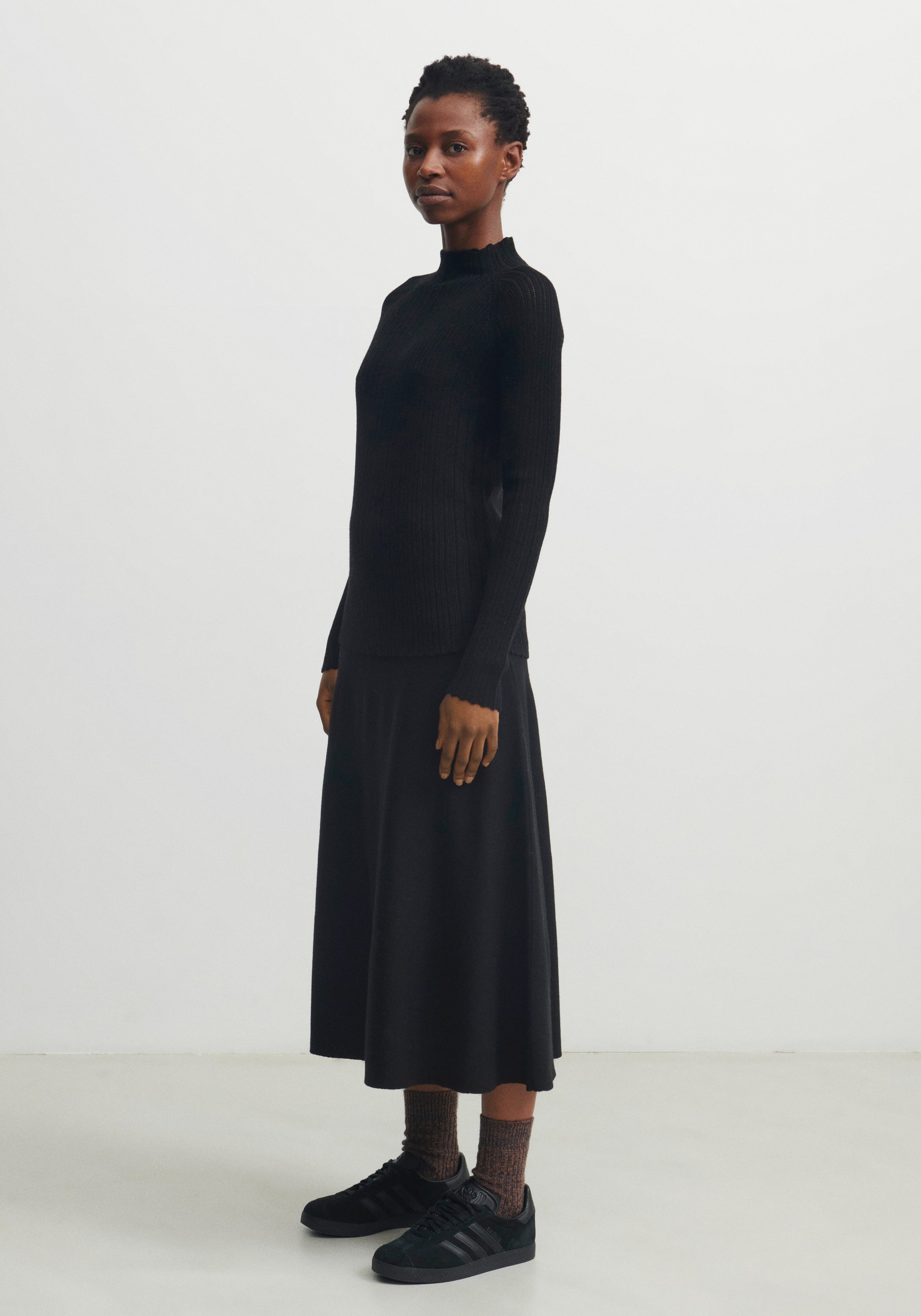 Helancă femei din lână merinos - Pointelle Fine knit Black