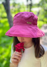 Pălărie ușoară din in cu bor larg și protecție naturală UV - UPF 30-35.