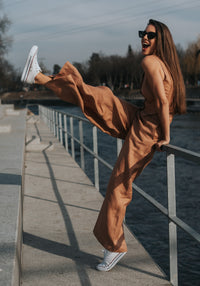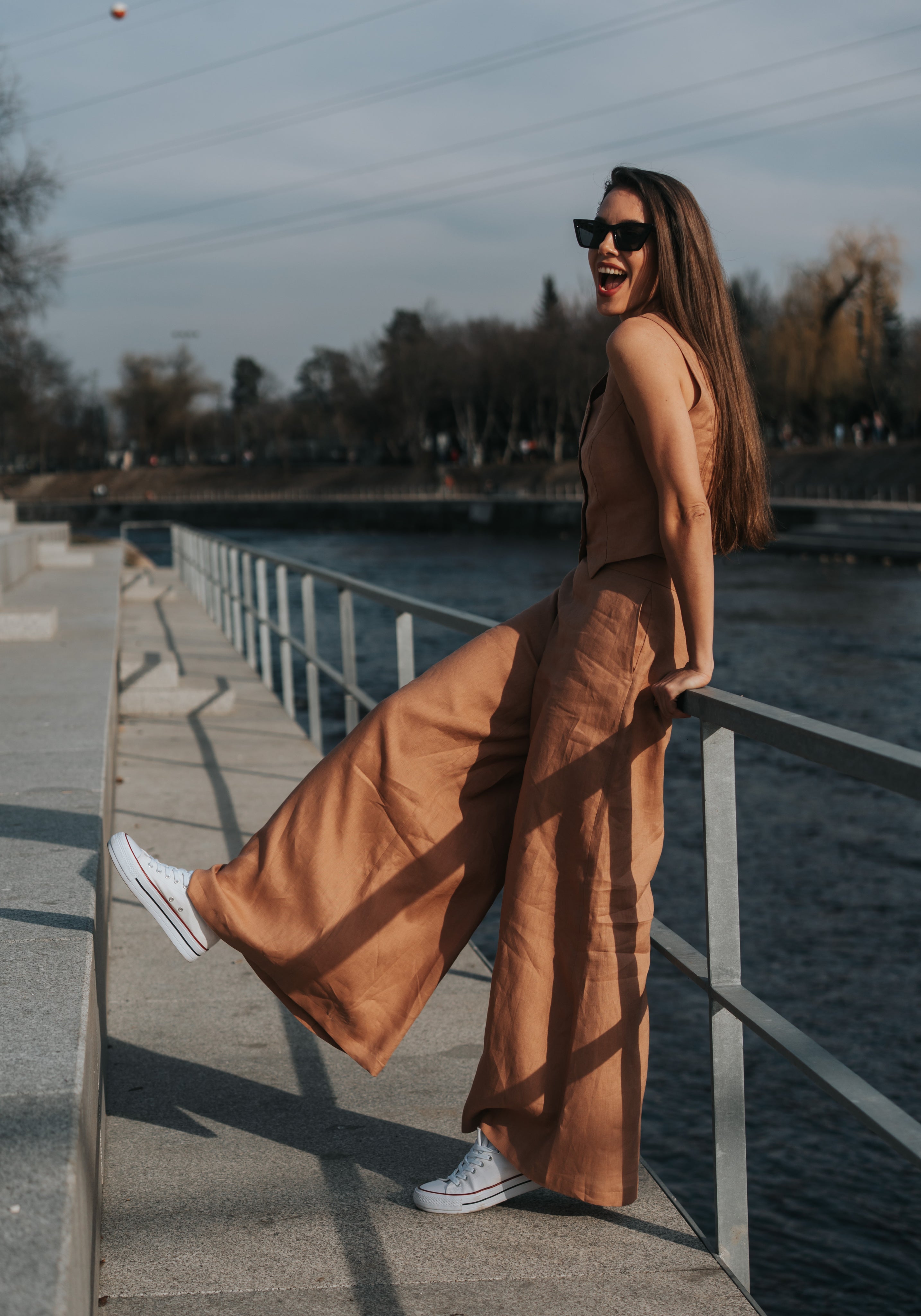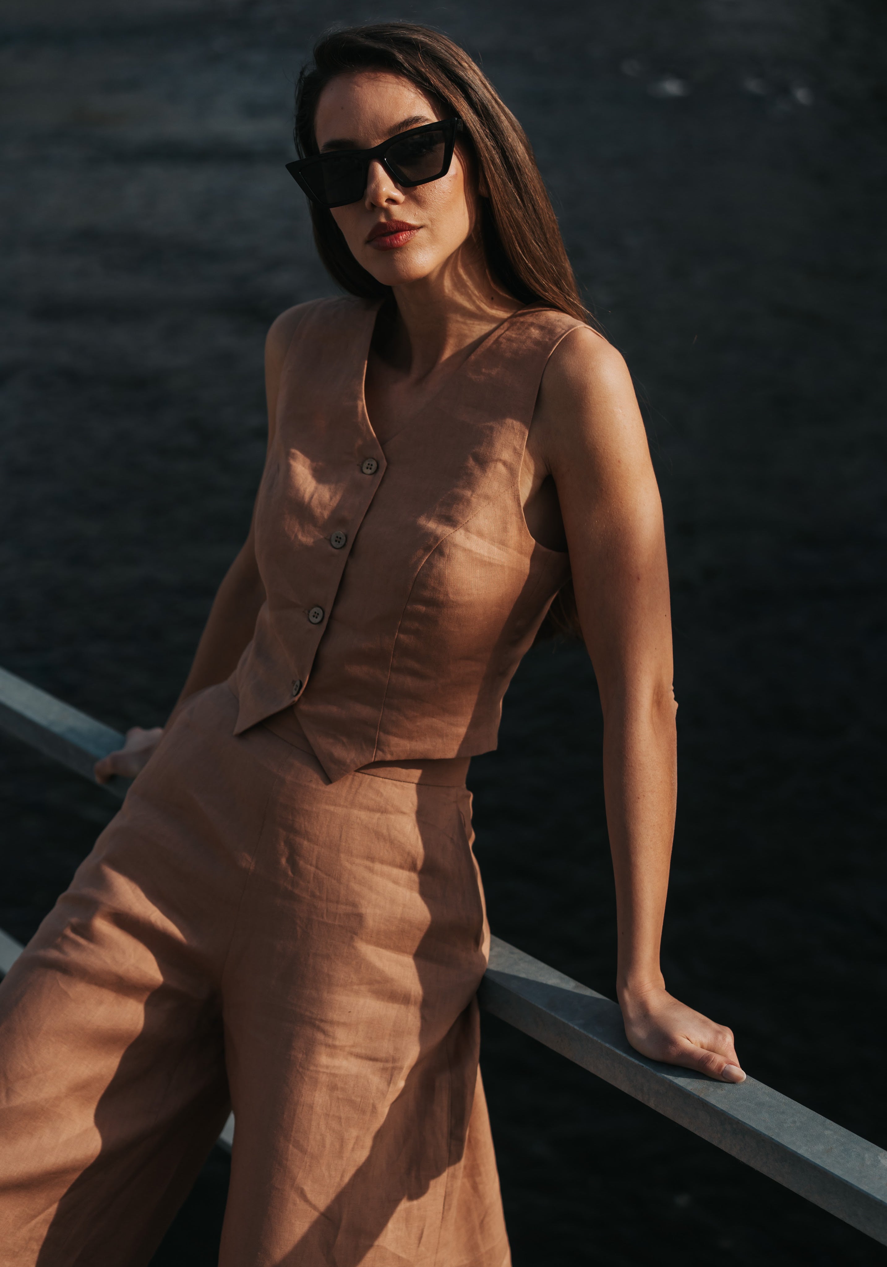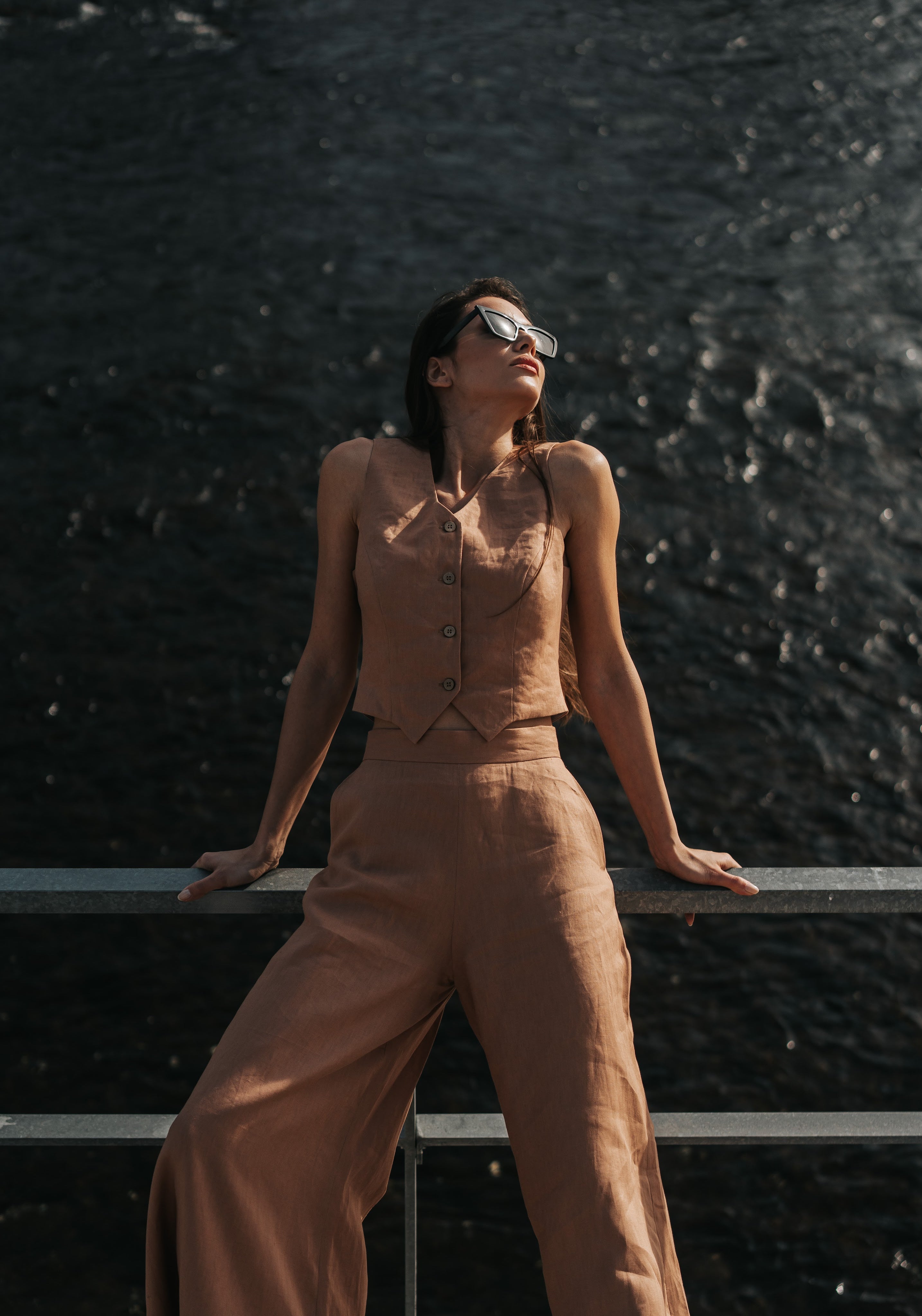 Pantaloni din in cu o croială fluidă, ce se așază perfect.