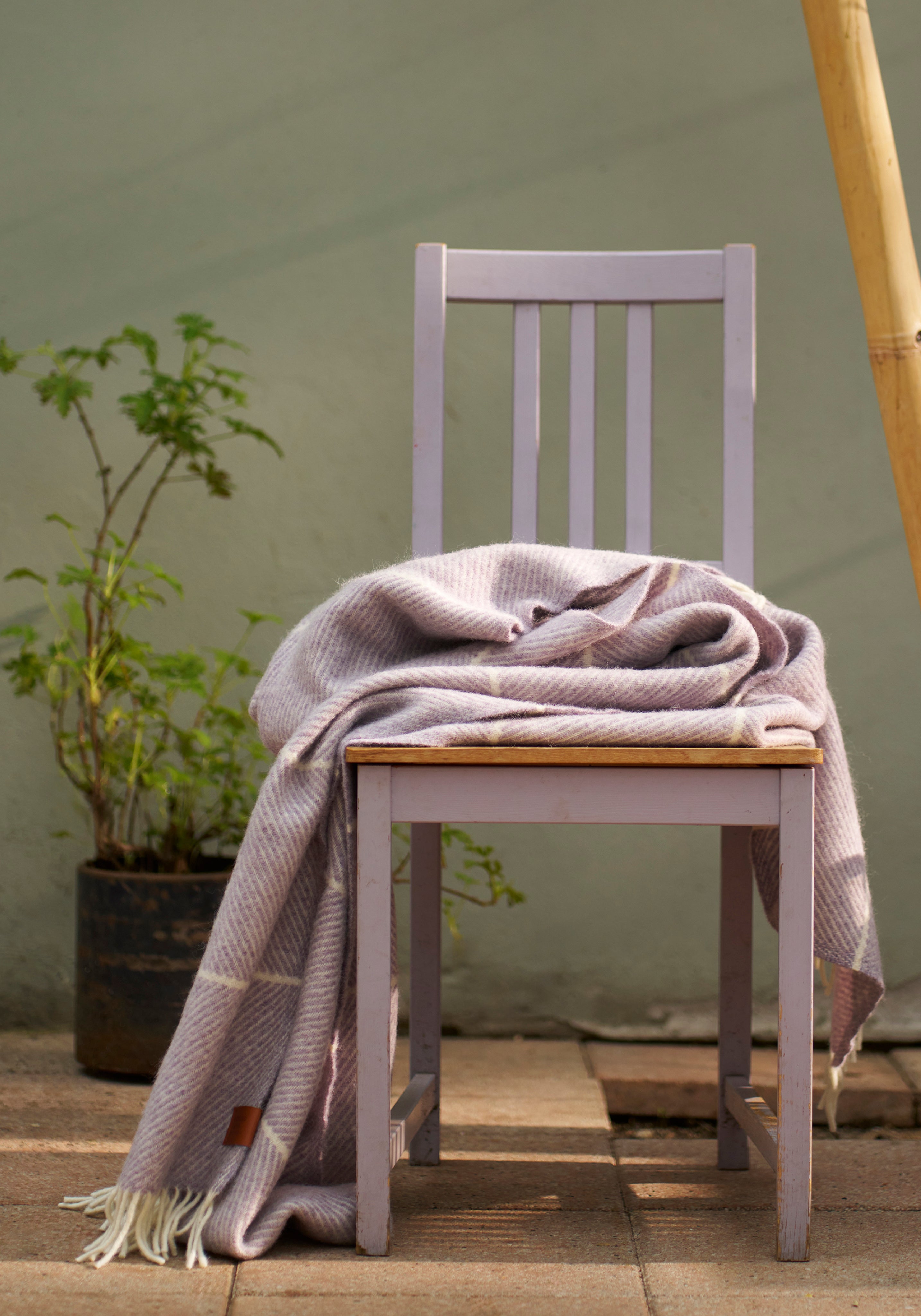 Pled din blend de lână de miel brushed si lână reciclată din procesul de productie, super moale si călduroasă.
