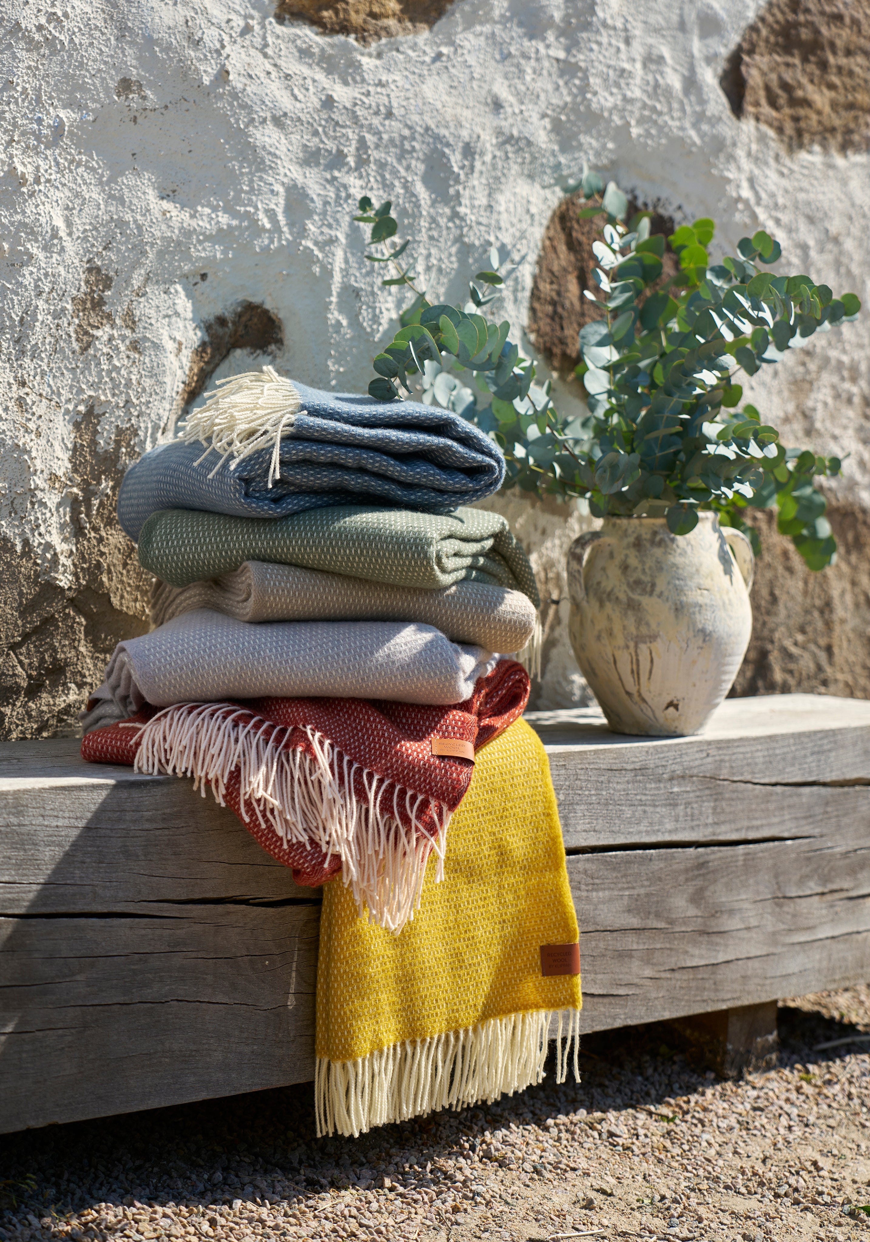Pătură premium din blend de lână merinos reciclată și lână merinos virgină, super moale și călduroasă.