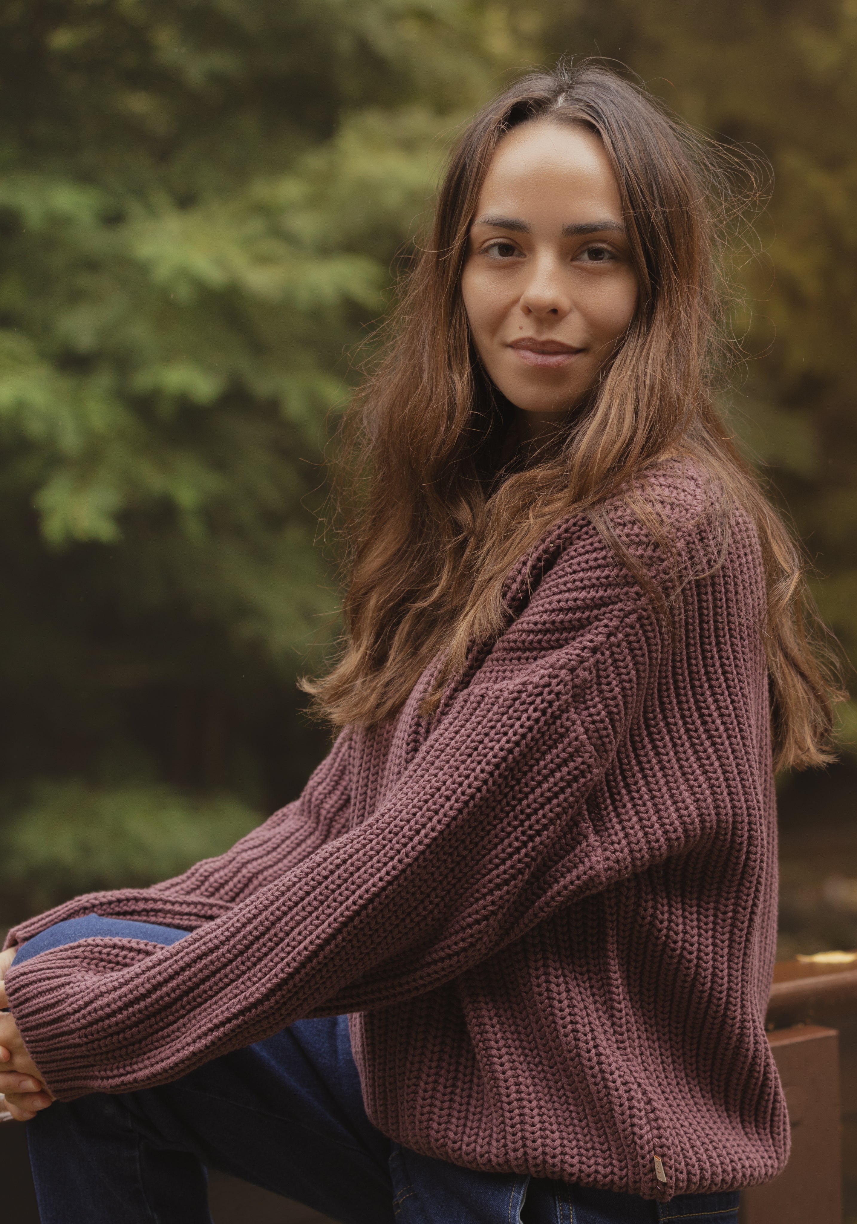 Pulover tricotat chunky din bumbac organic foarte fin.