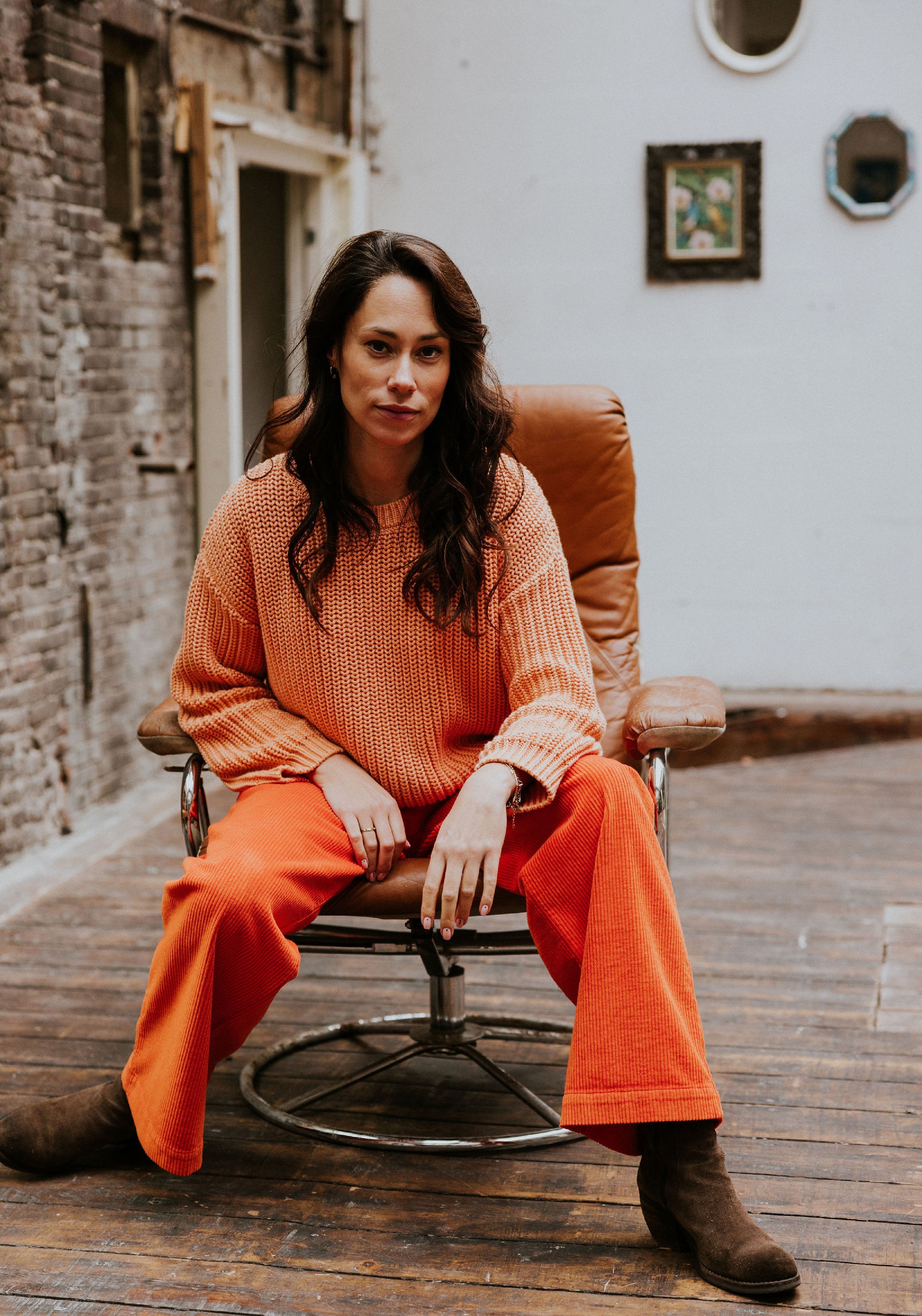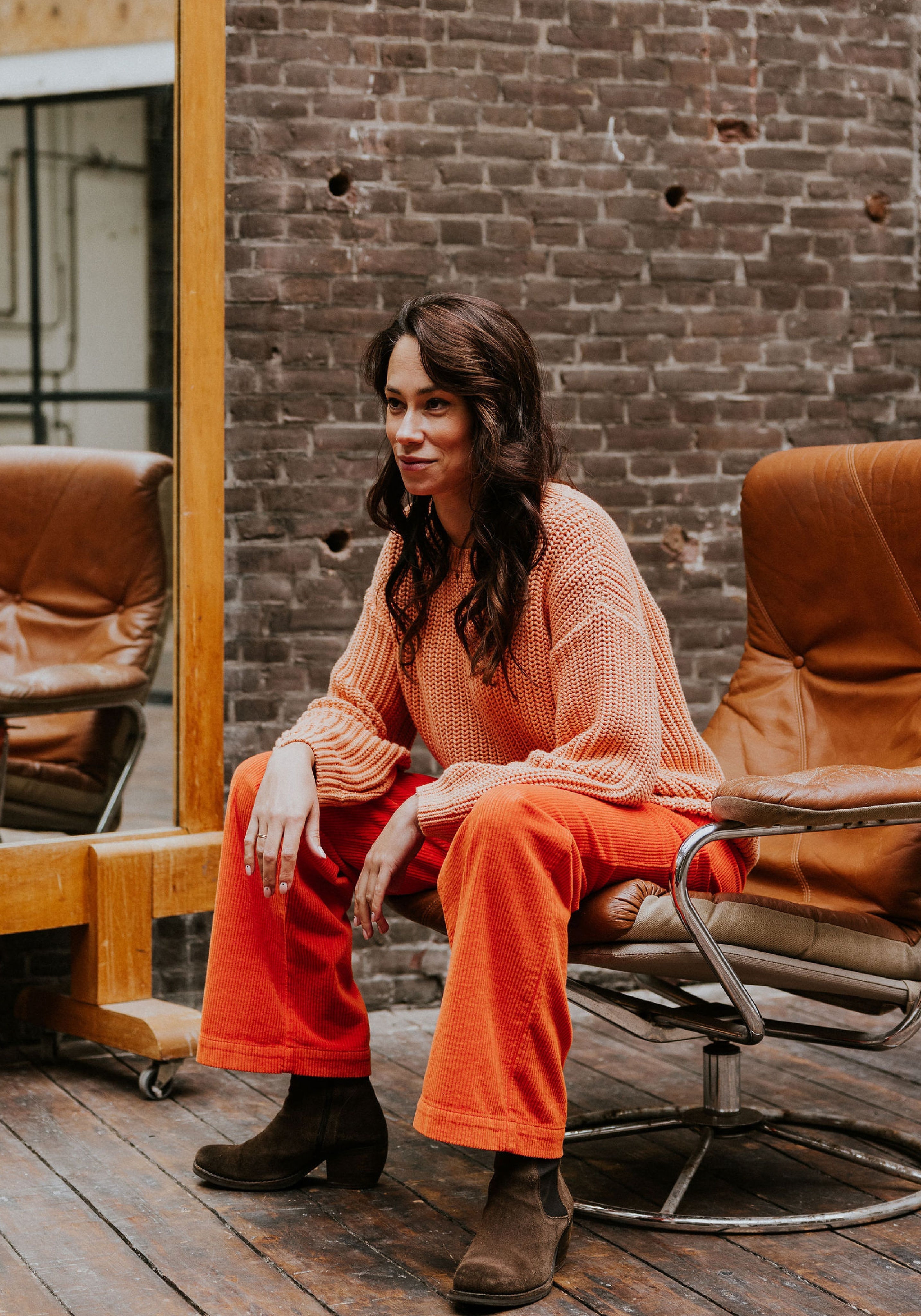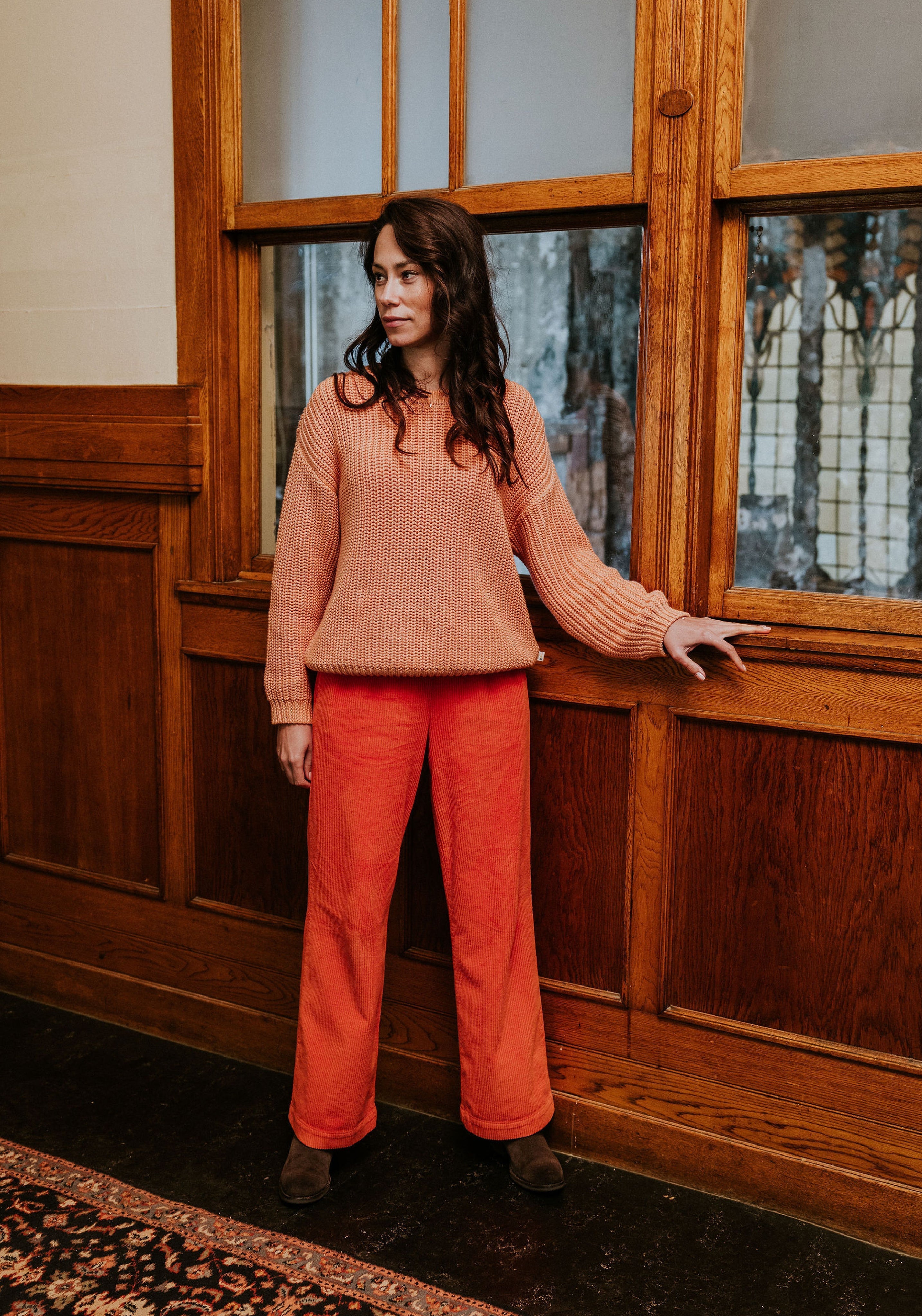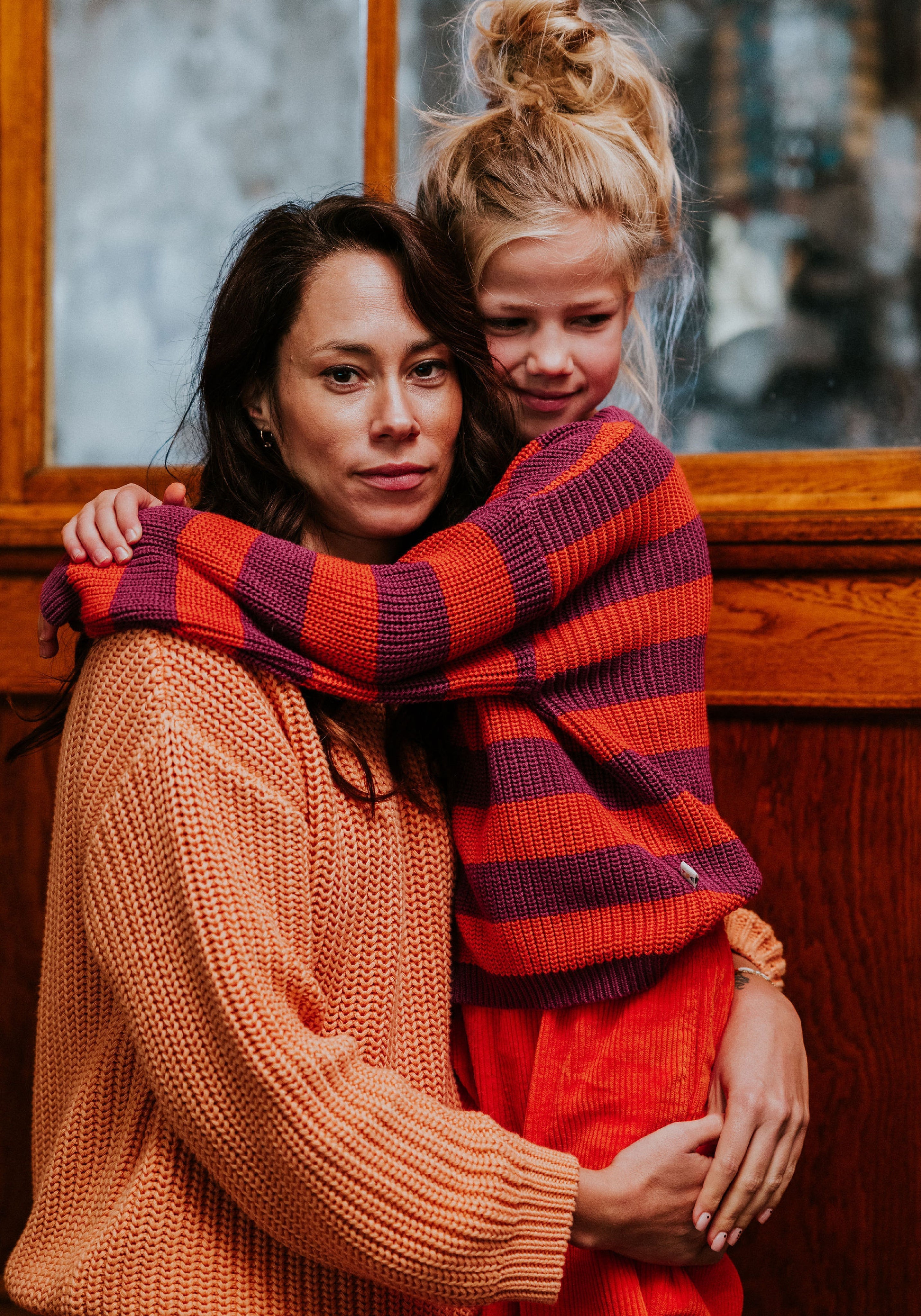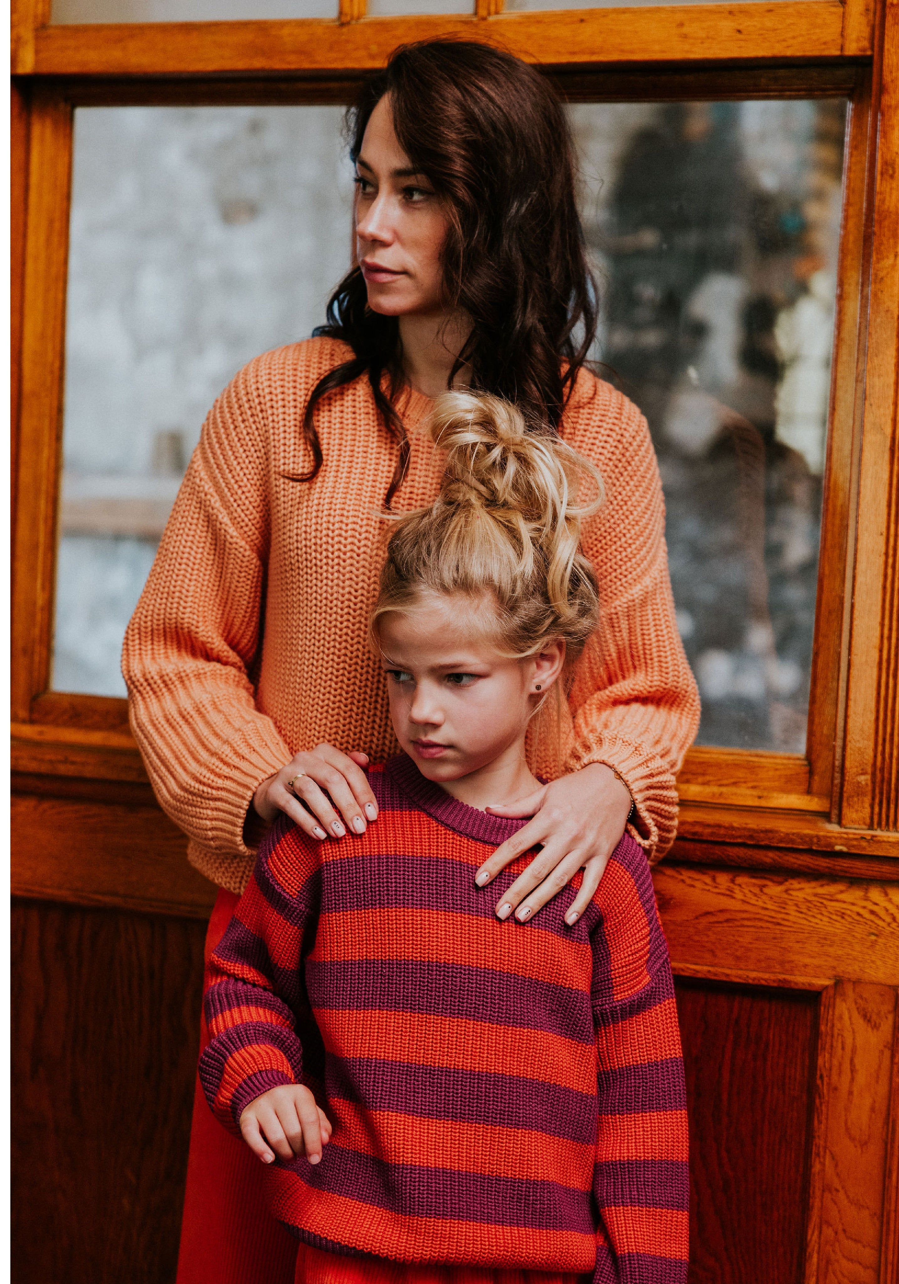Pulover tricotat chunky din bumbac organic foarte fin.