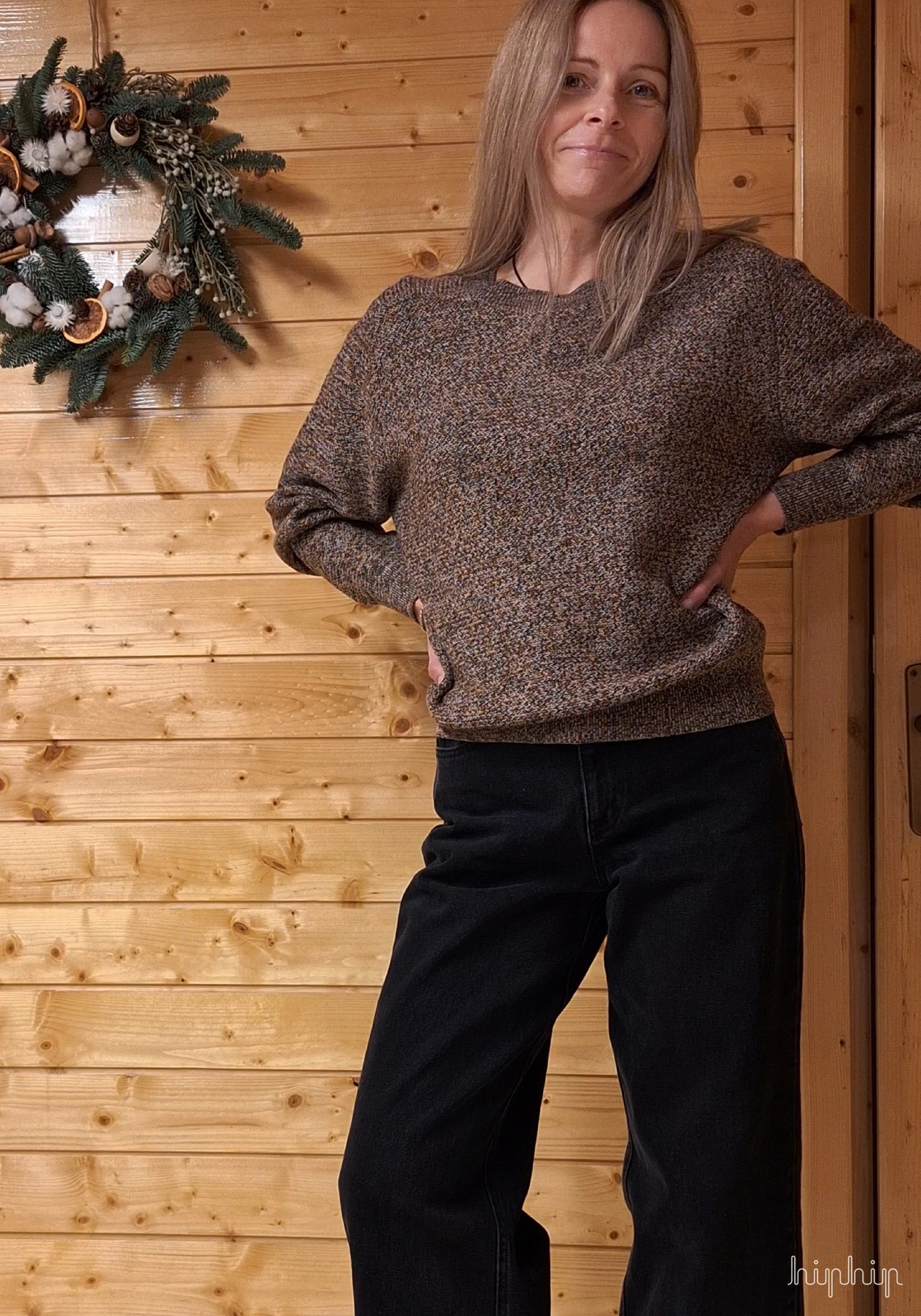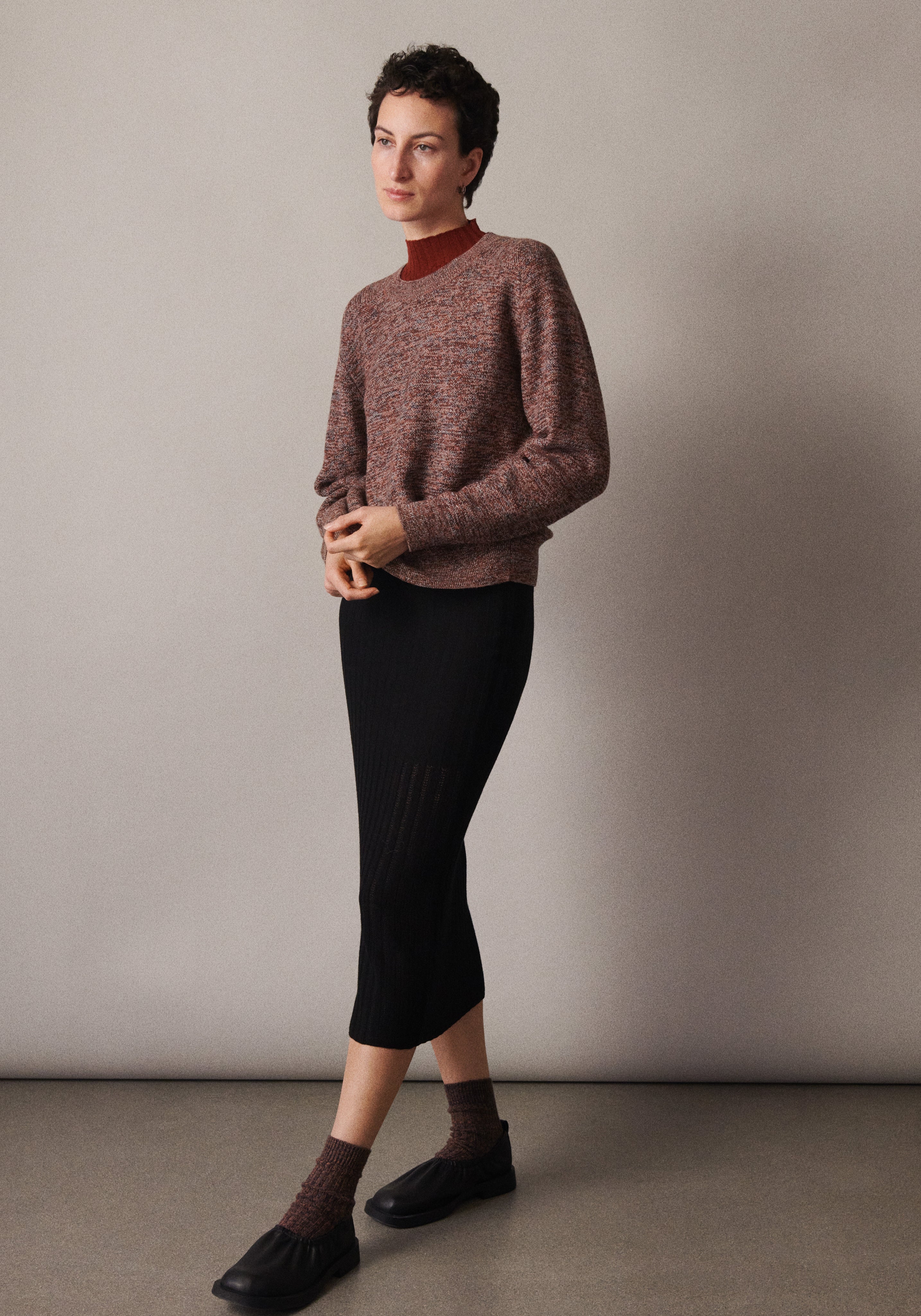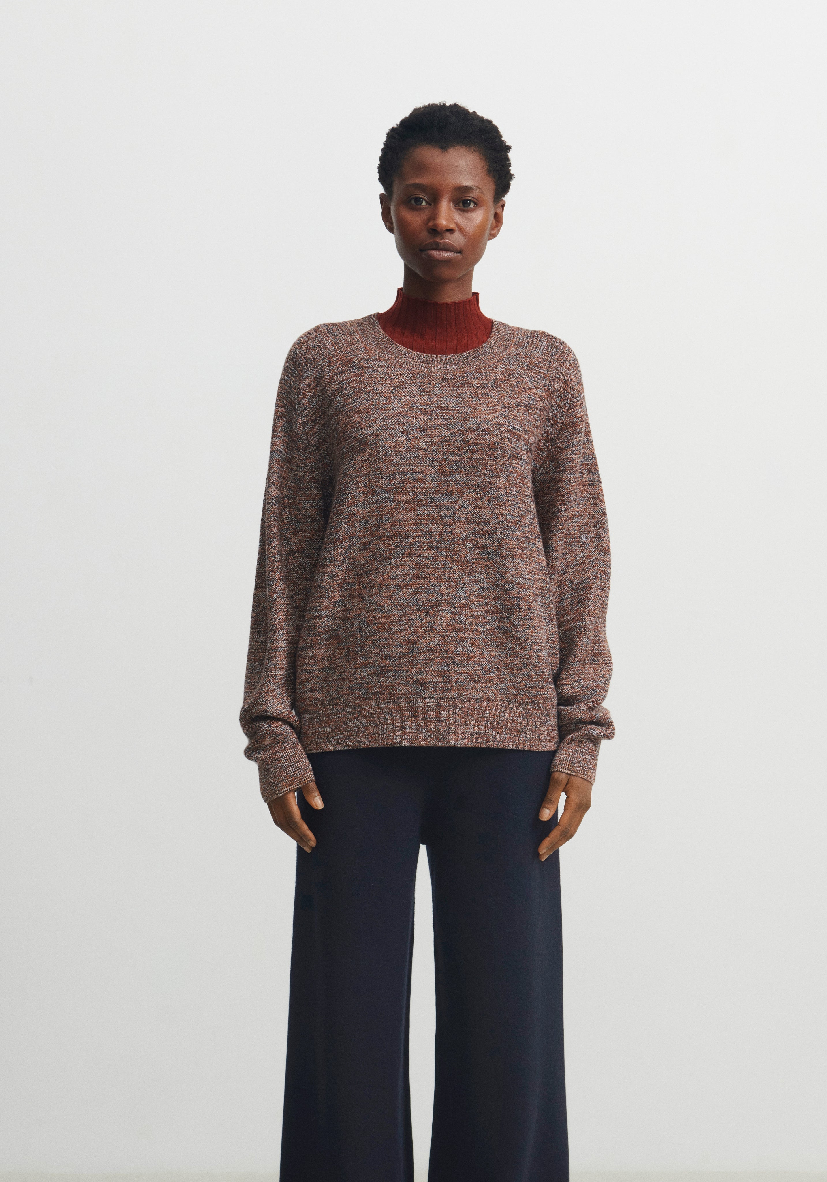 Pulover femei din lână merinos - Knit Ochre Orange Melange