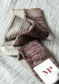 Șosete groase din fir mixt de lână merinos și bumbac, cu aspect melange.