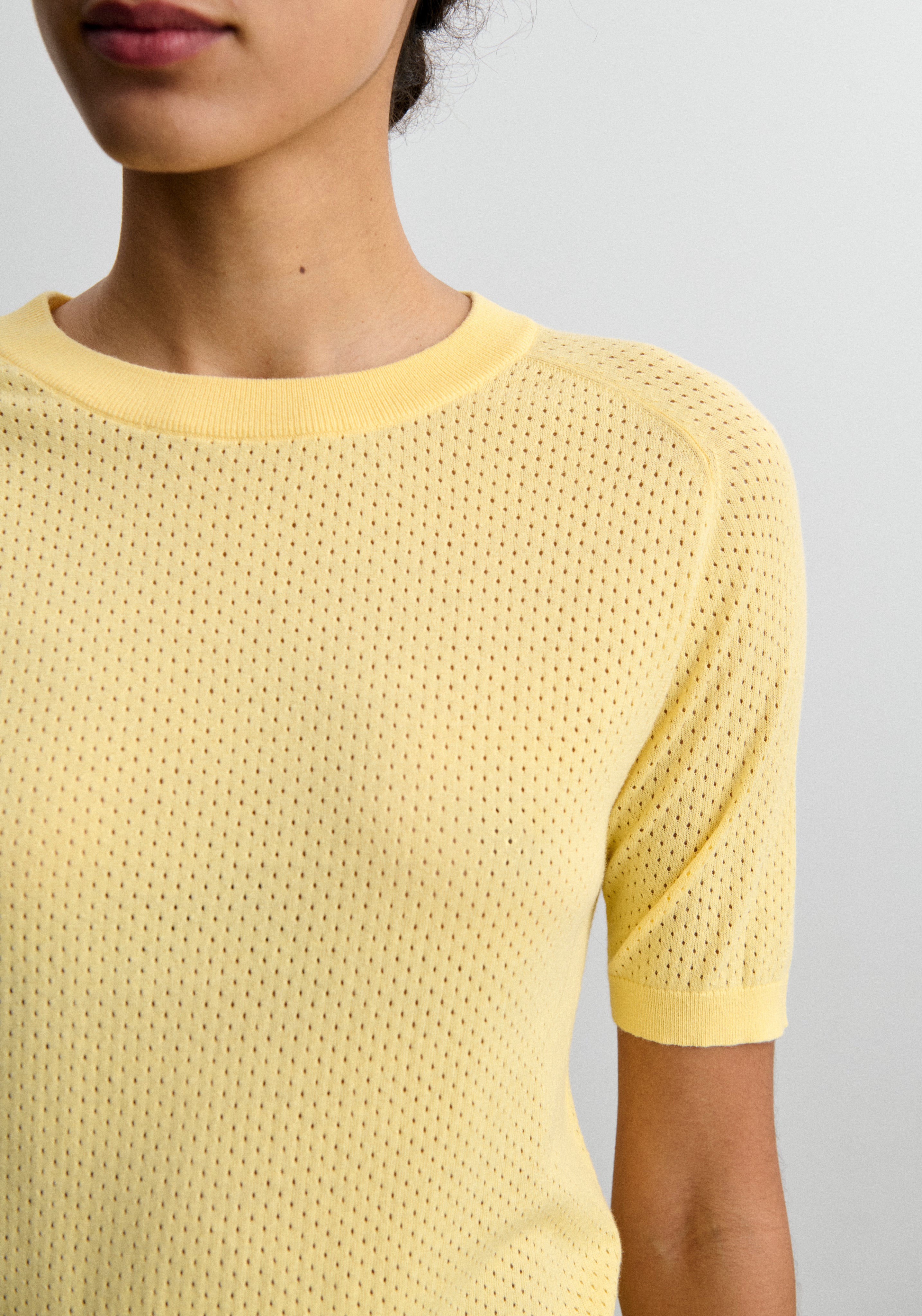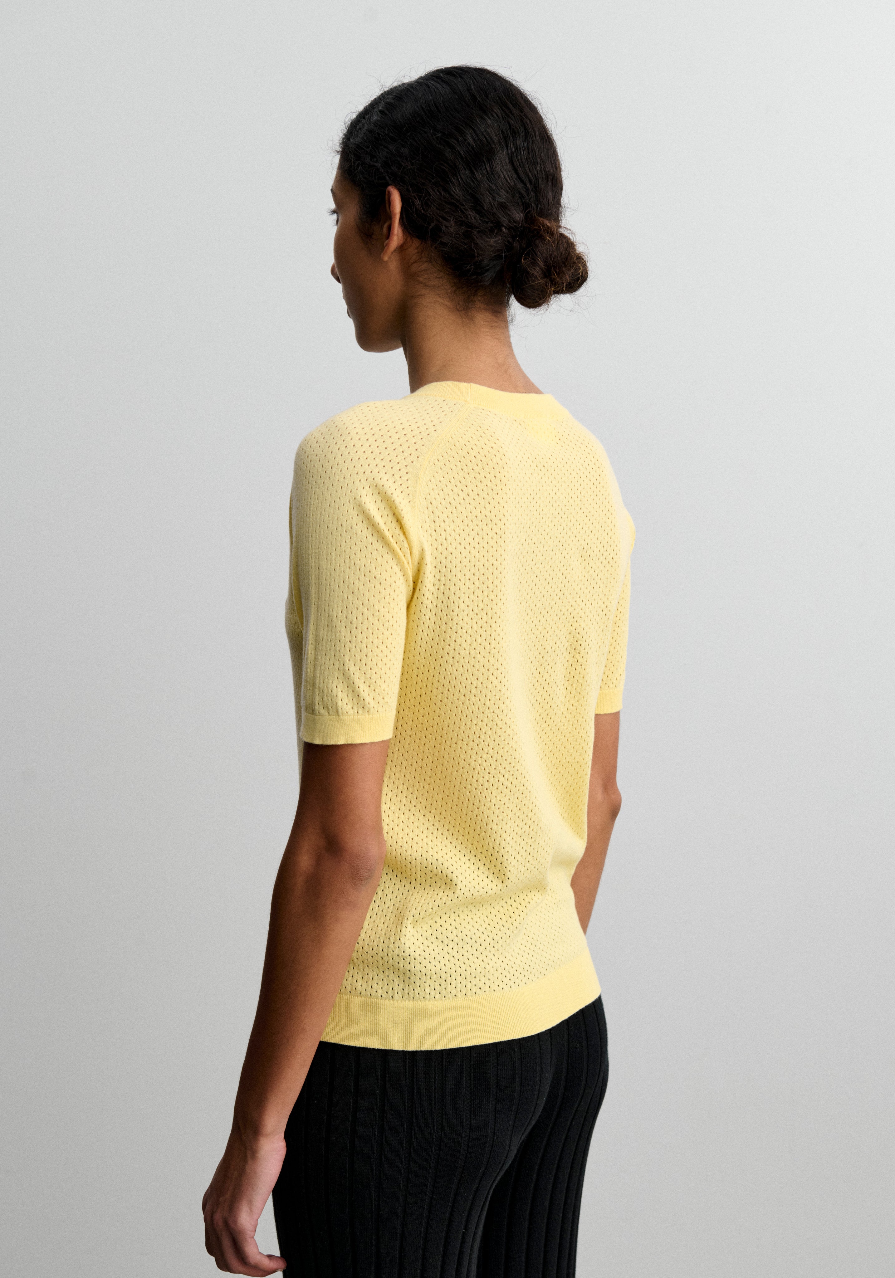 Tricou din bumbac organic tricotat, cu model delicat pointelle.