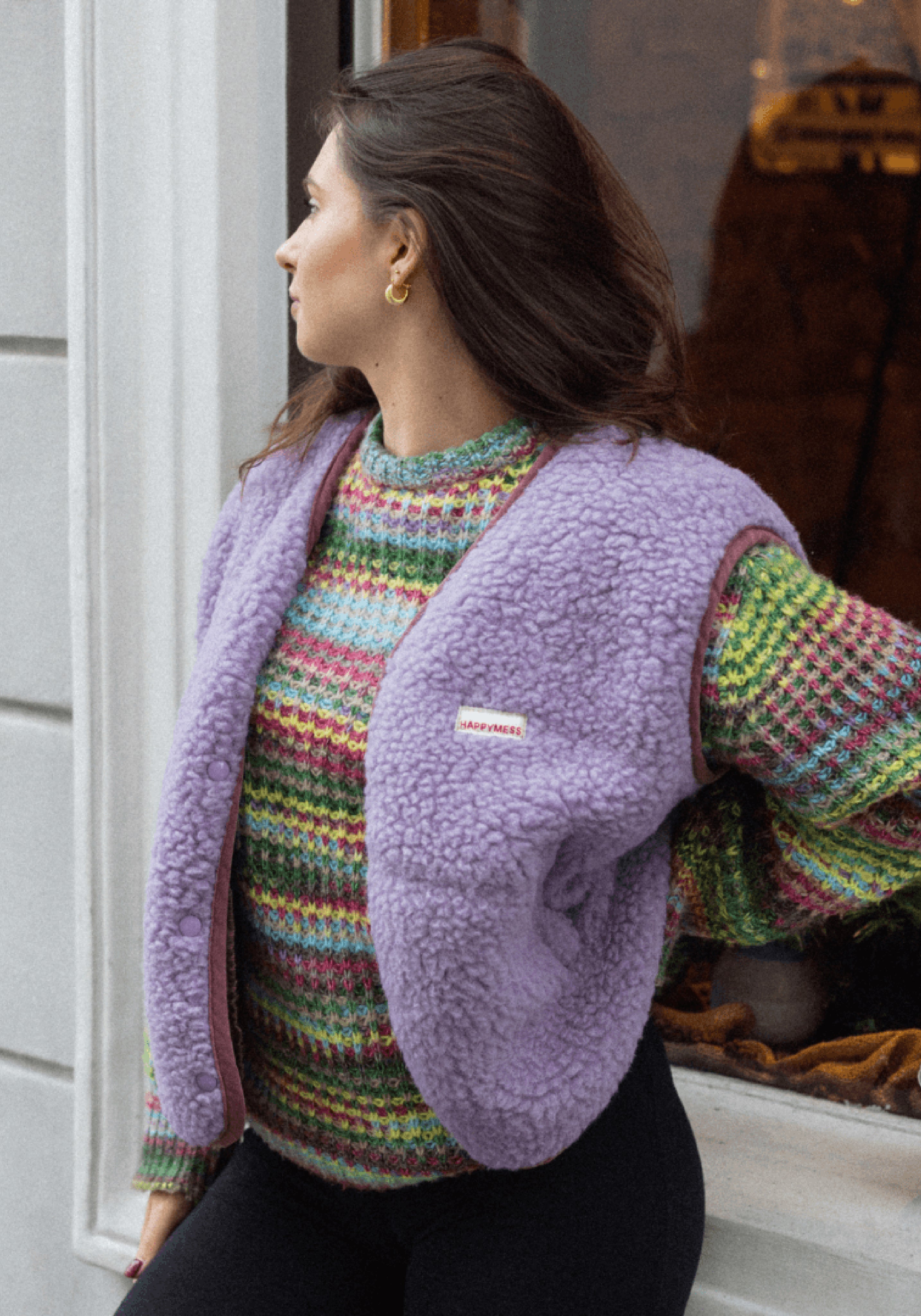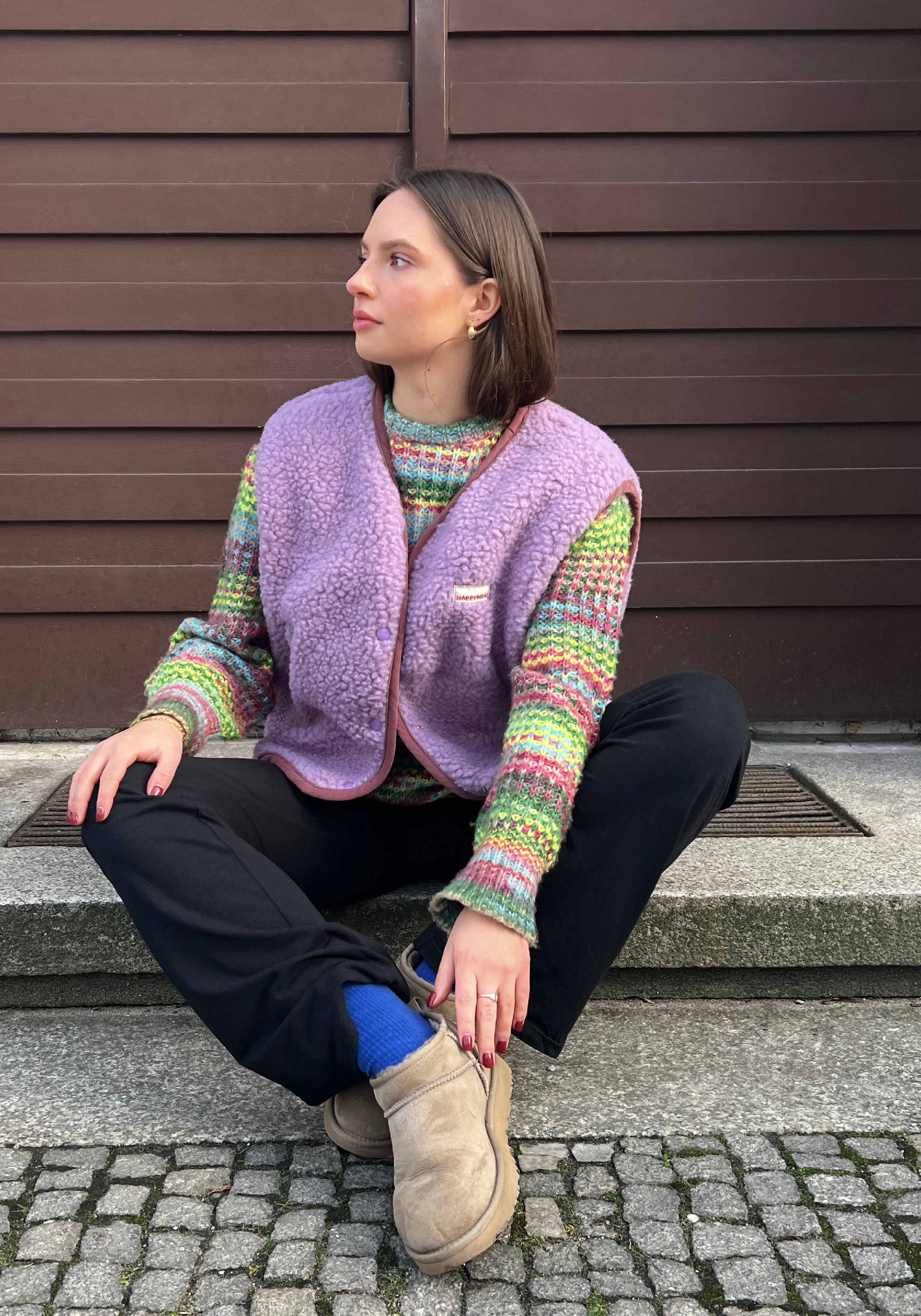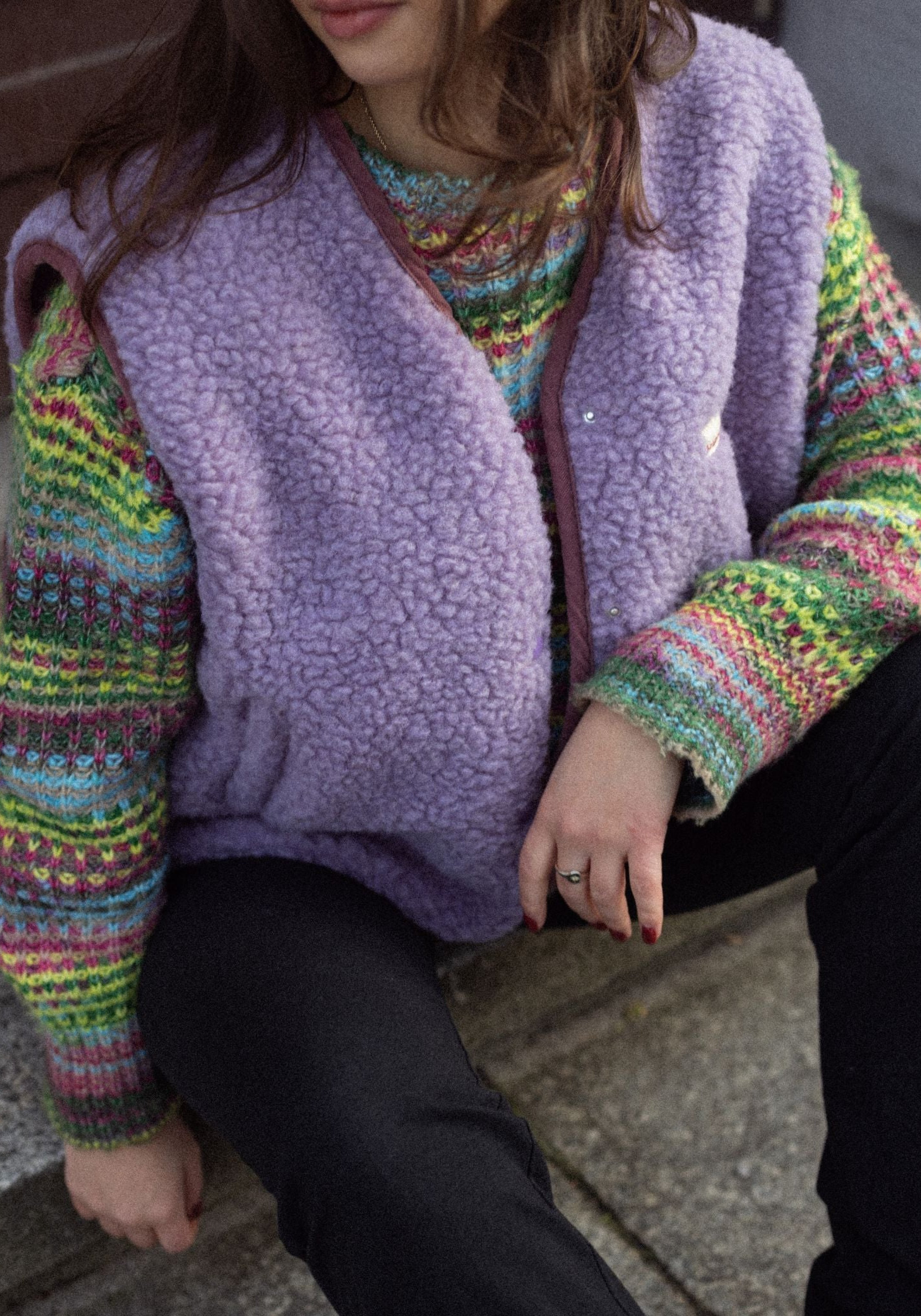 Vestă femei fleece din lână merinos - Teddy Lilac Cloud