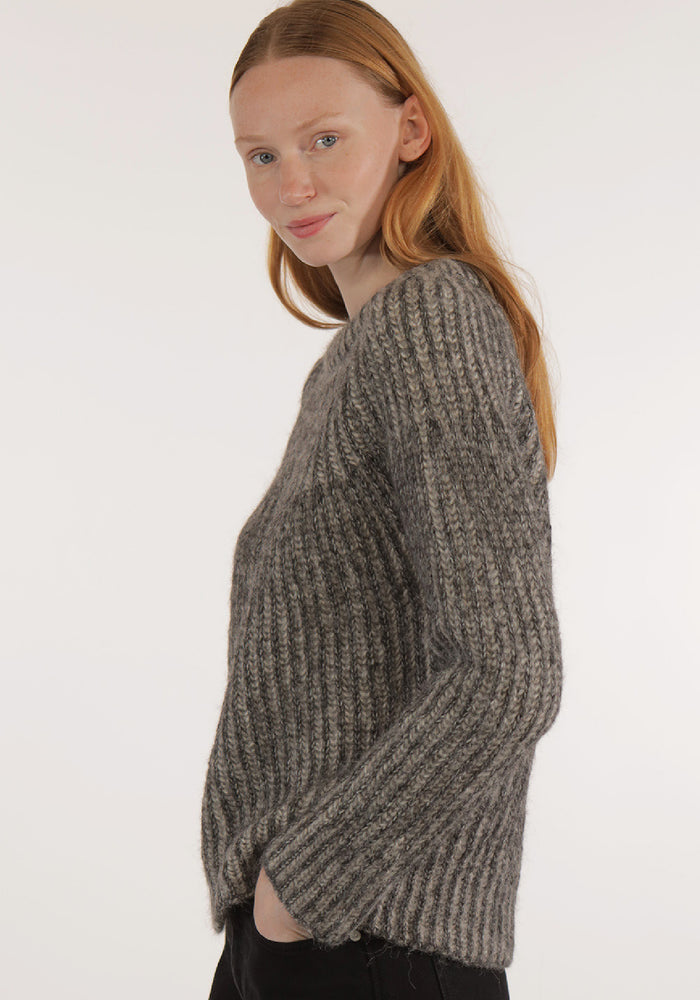 Pulover femei baby alpaca - Ilda Kaki/Grey